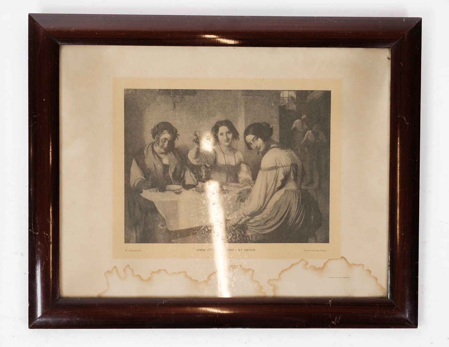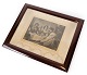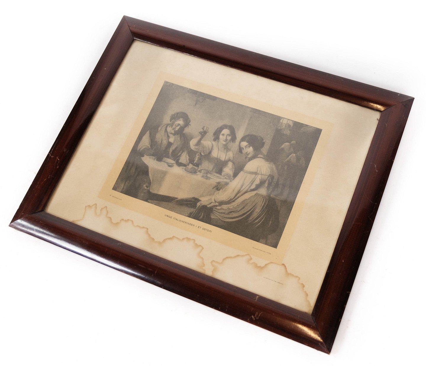 Print with portrait of three women and dark wooden frame from the 1940s.