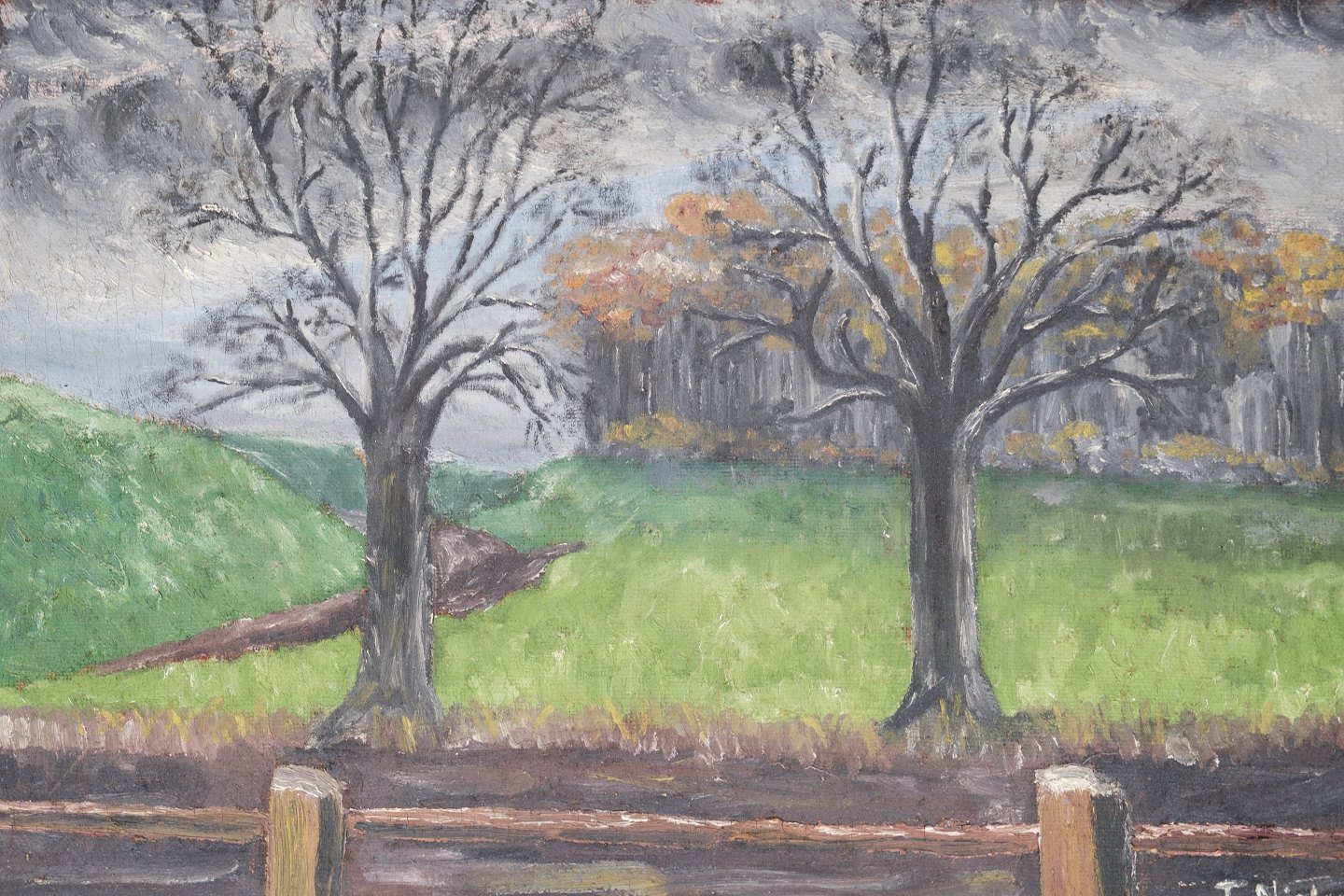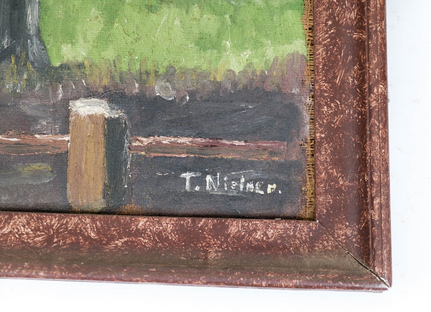 Painting on canvas with nature motif and dark frame, signed T. Nielsen from the 1930s.