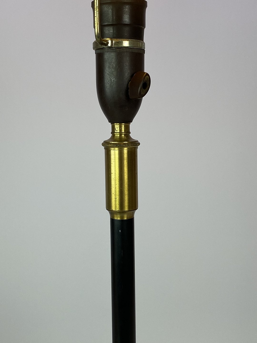 Bordlampe med stel af sort metal og messing med papir skærm, af dansk design af Le Klint fra 1960erne.