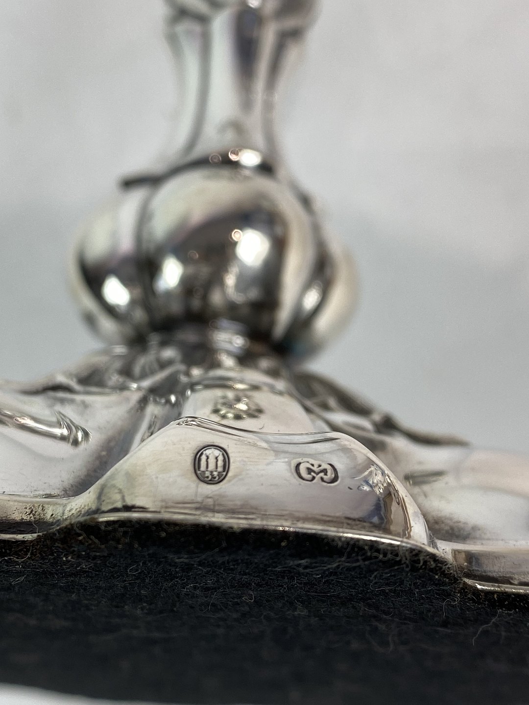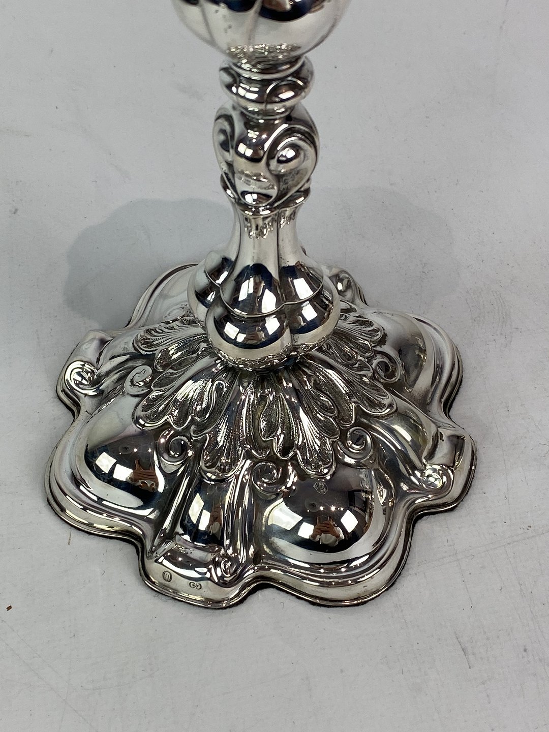 Set of two rococo candlesticks of hallmarked silver, in great antique condition from the 1920s.
