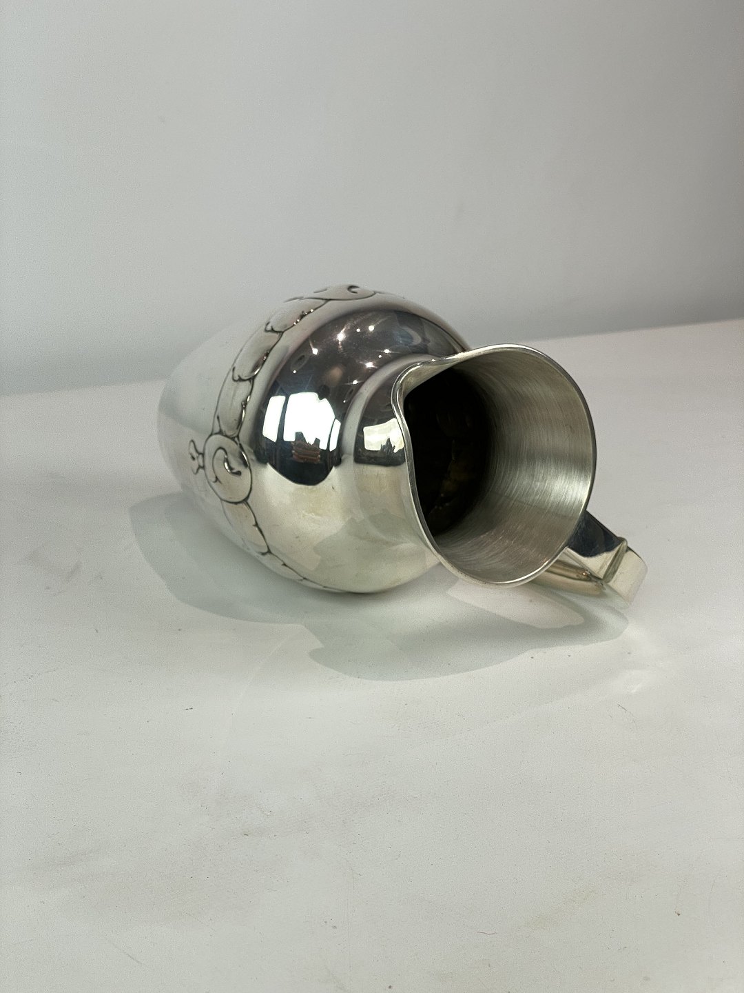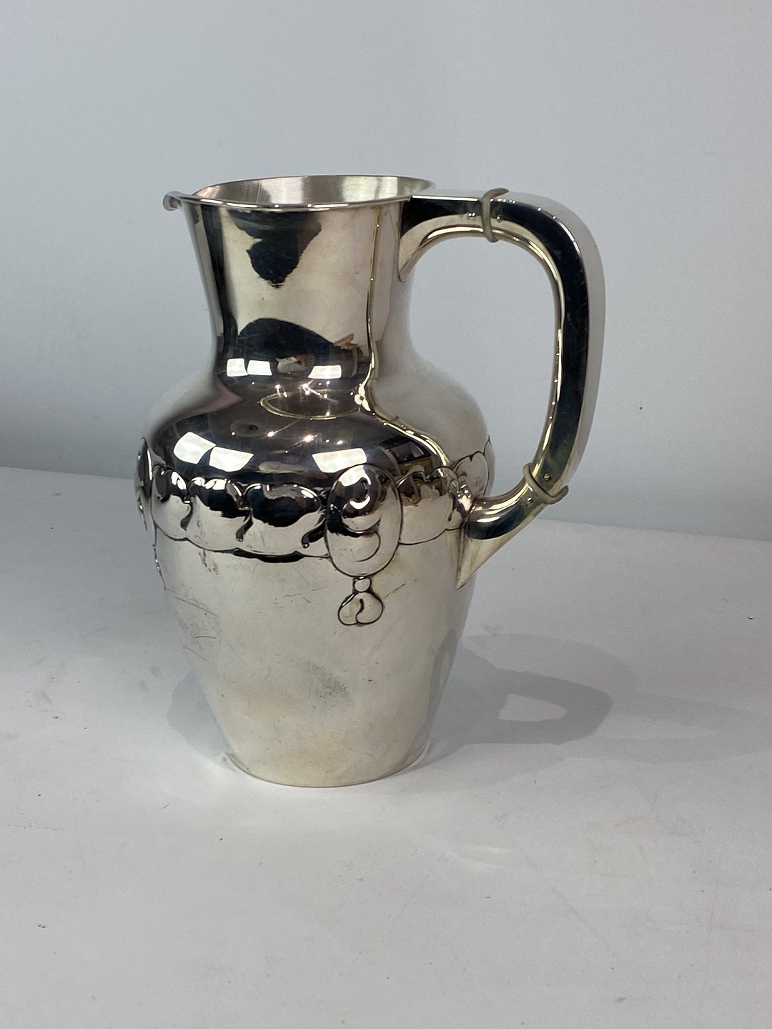 Vandkande i jugendstil af tretårnet sølv stemplet Augusta H., fra 1930erne. Kanden er i flot antik stand.