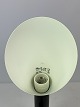 Black table lamp designed by Arne Jacobsen and manufactured by Louis Poulsen. The lamp was originally designed for the SAS Royal Hotel in Copenhagen in 1957 for the hotel's design concept. The lamp here is the original made of steel with a tiltable head, which emits a direct and directional light. It is lacquered white on the inside and black on the outside. The lamp is in great vintage condition.