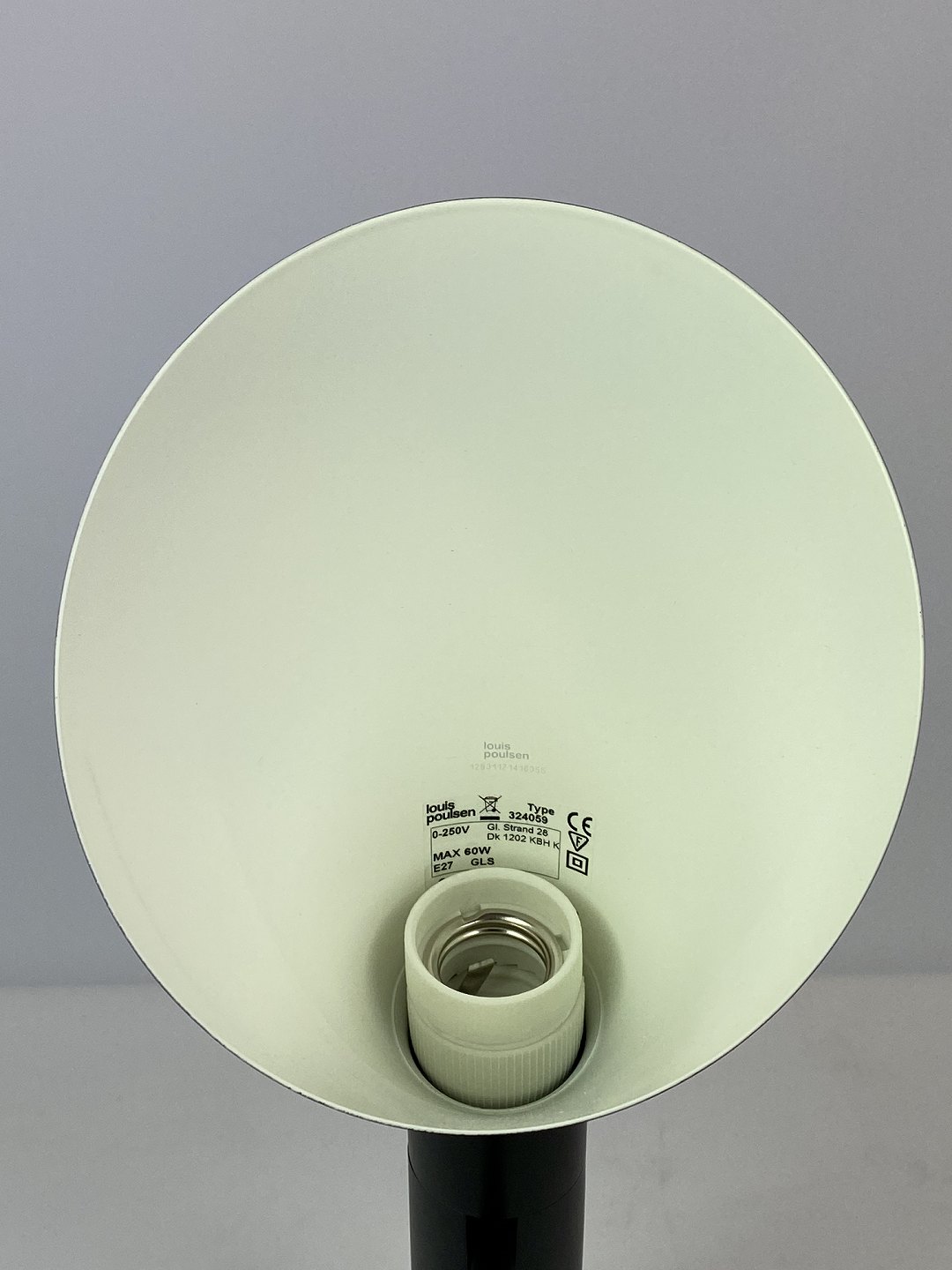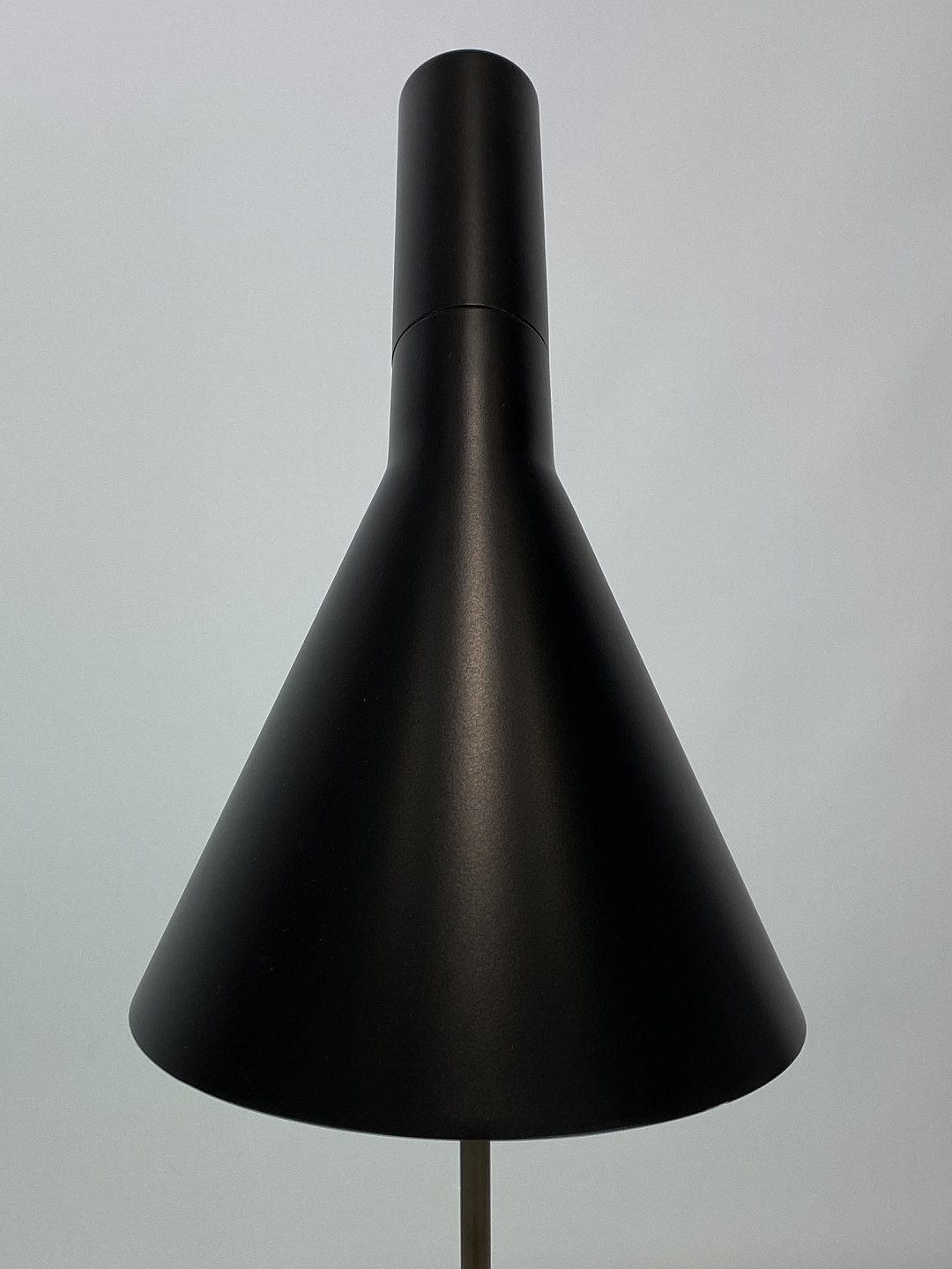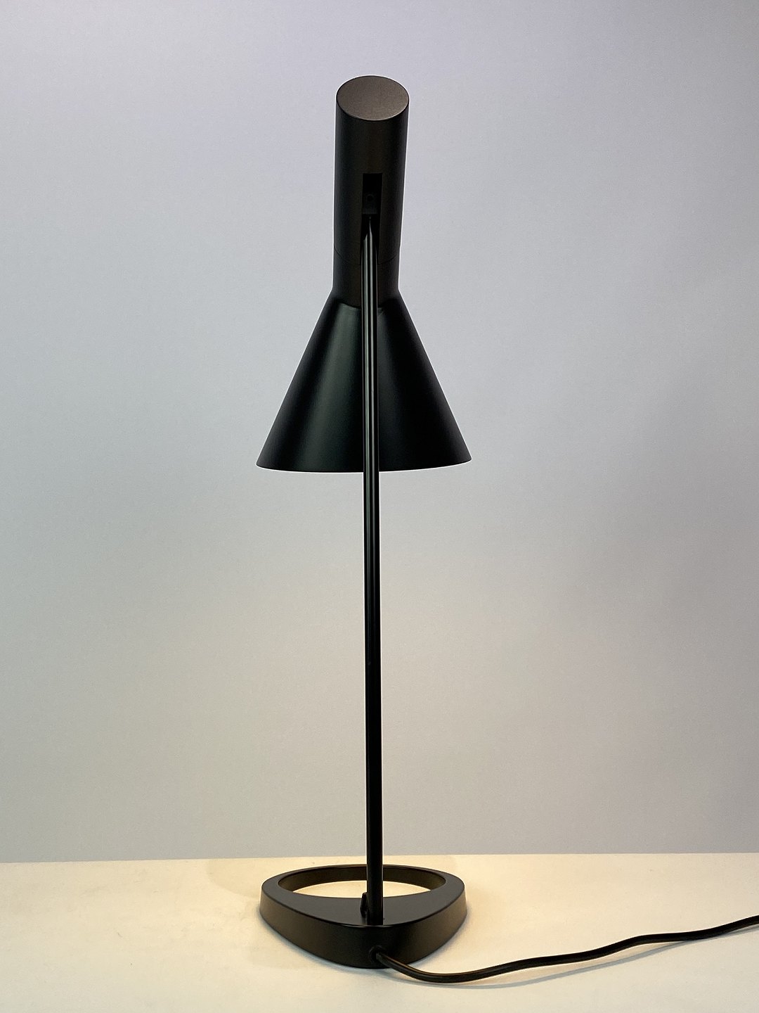 Black table lamp designed by Arne Jacobsen and manufactured by Louis Poulsen.