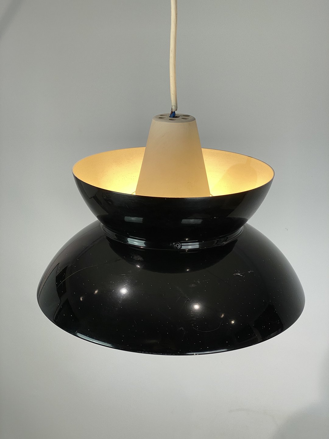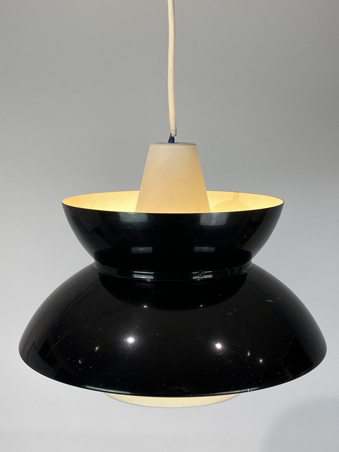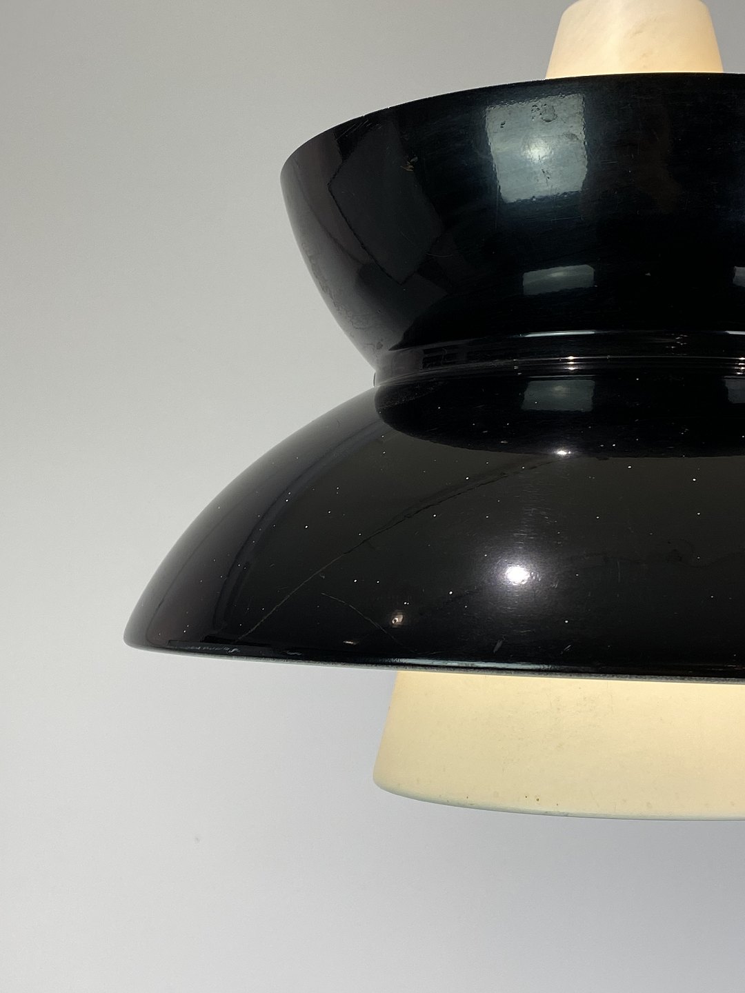 Sold"Søværns" pendant in black and white designed by Jørn Utzon and manufactured by Louis Poulsen in the 1960s. The lamp is in great vintage condition.