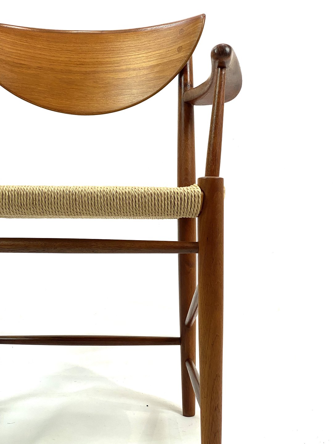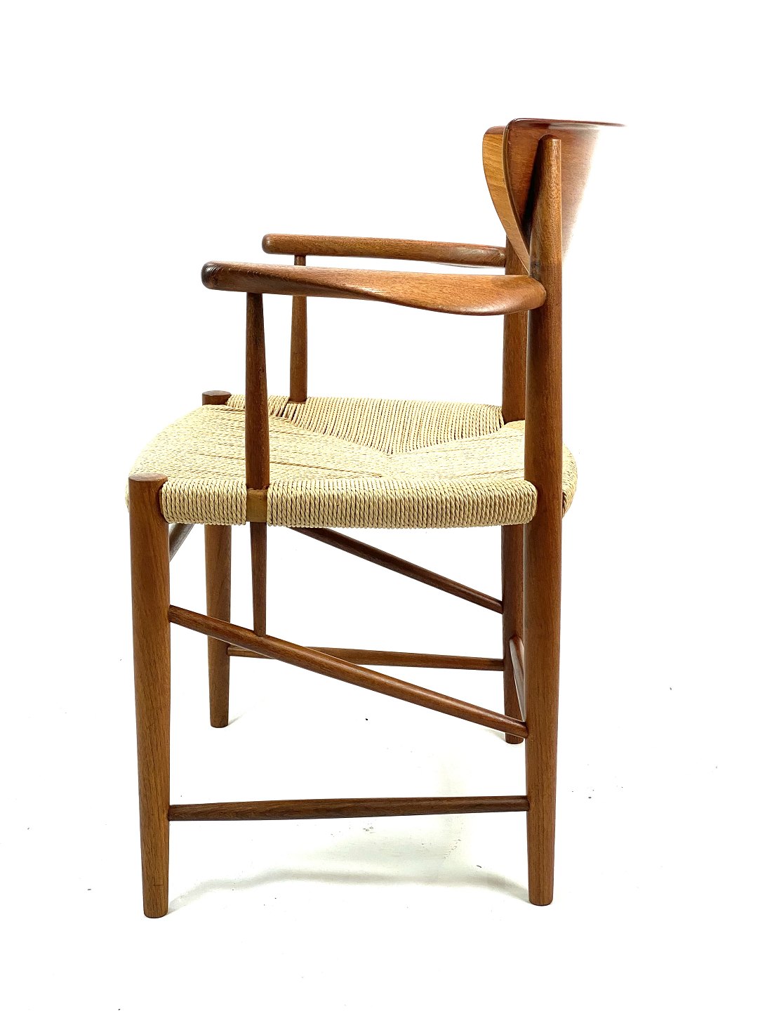 SolgtArmstol, model 317, designet af Hvidt og Mølgaard og fremstillet af Søborg Møbelfabrik i 1958. Stolen er af teak med fletsæde.