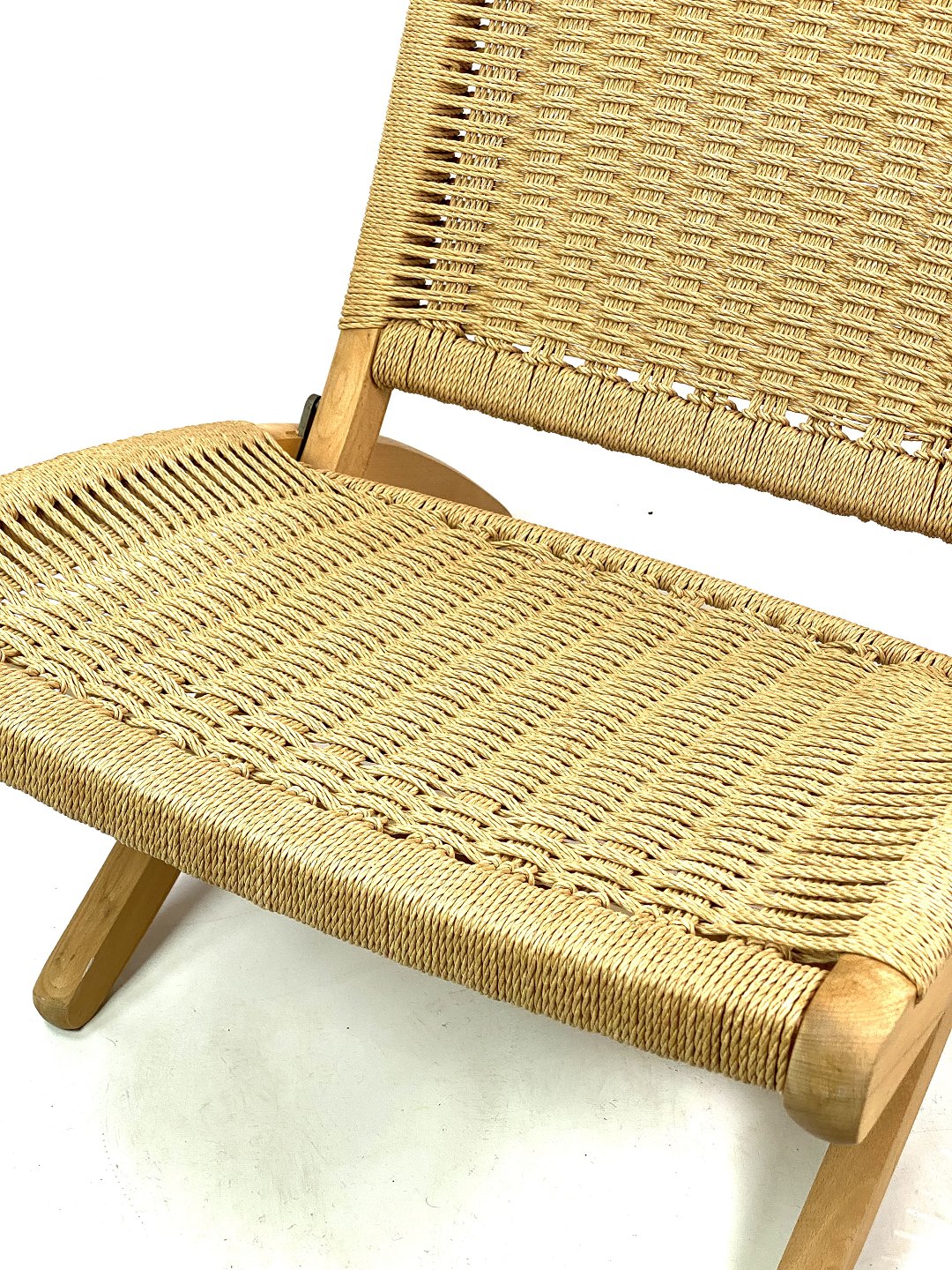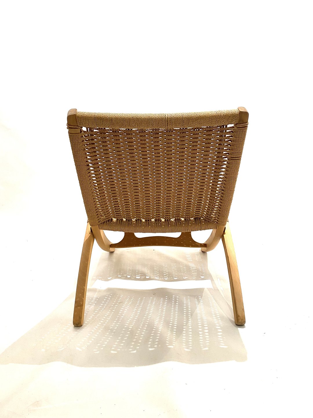 SoldIn the style of Hans Wegner, this fine cord/rope folding lounge chair exhibits remarkable craftsmanship, precisely organic form with original woven seat and back. The beautifully angled form is remarkably comfortable which is complemented by the thick cording. The sleek low profile is perfect for relaxation and would add an element of elegance to any room.