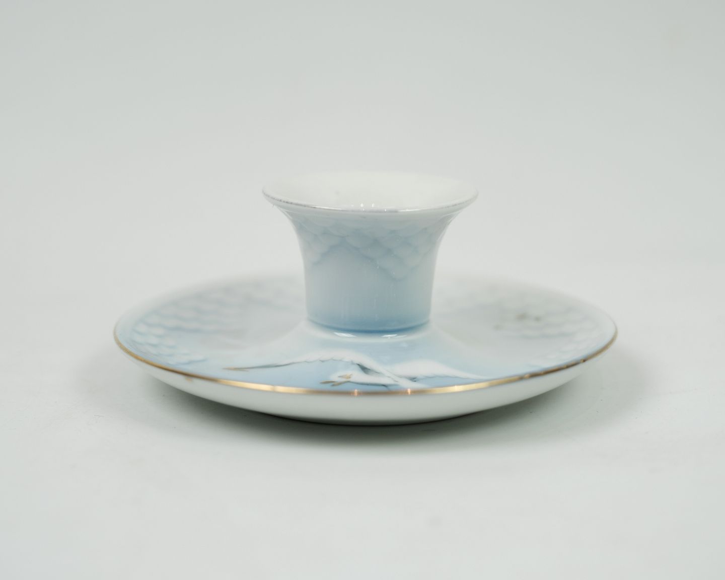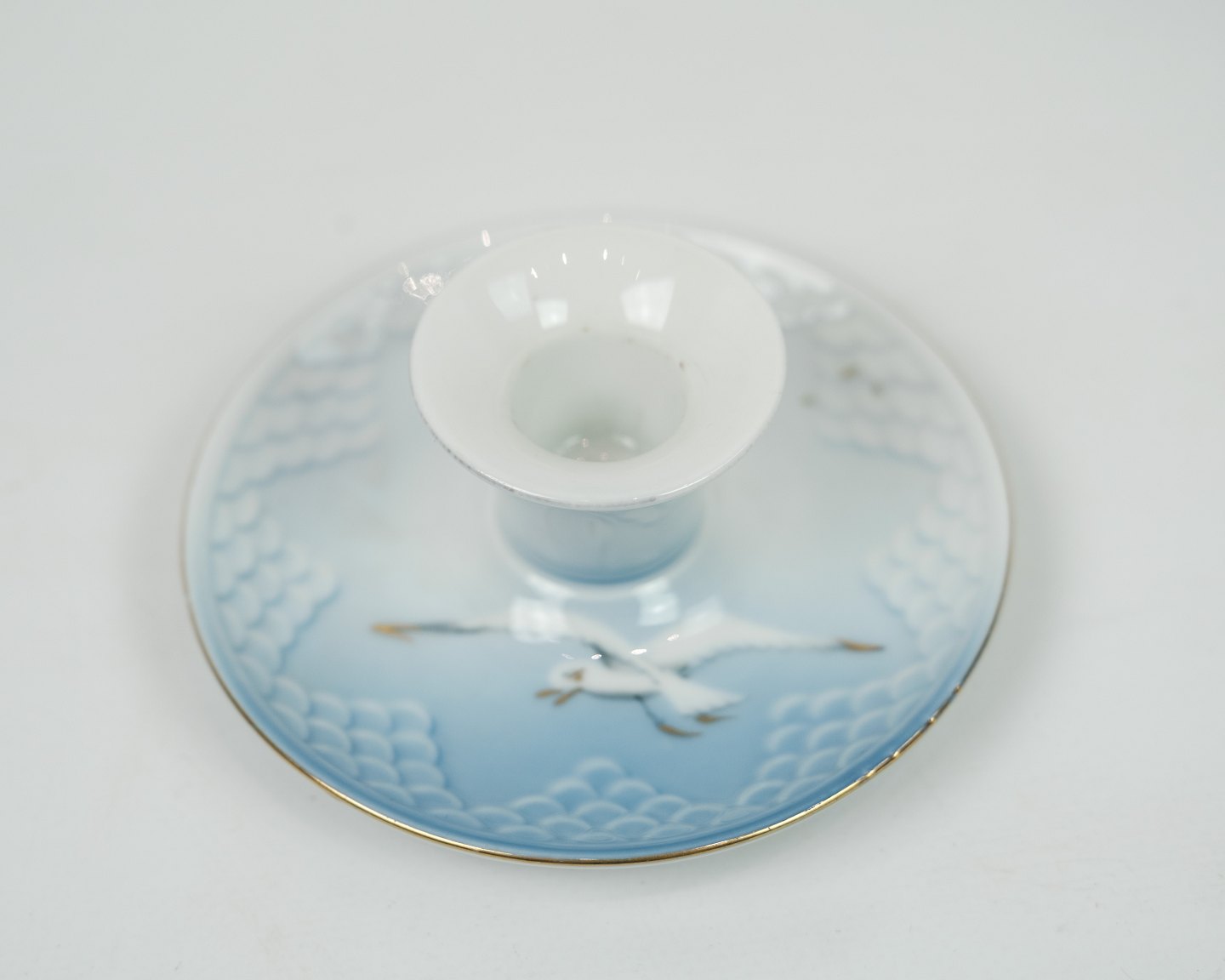 Lysestage fra Bing & Grøndahl i mågestel. Står i meget fin stand med guldkant.
