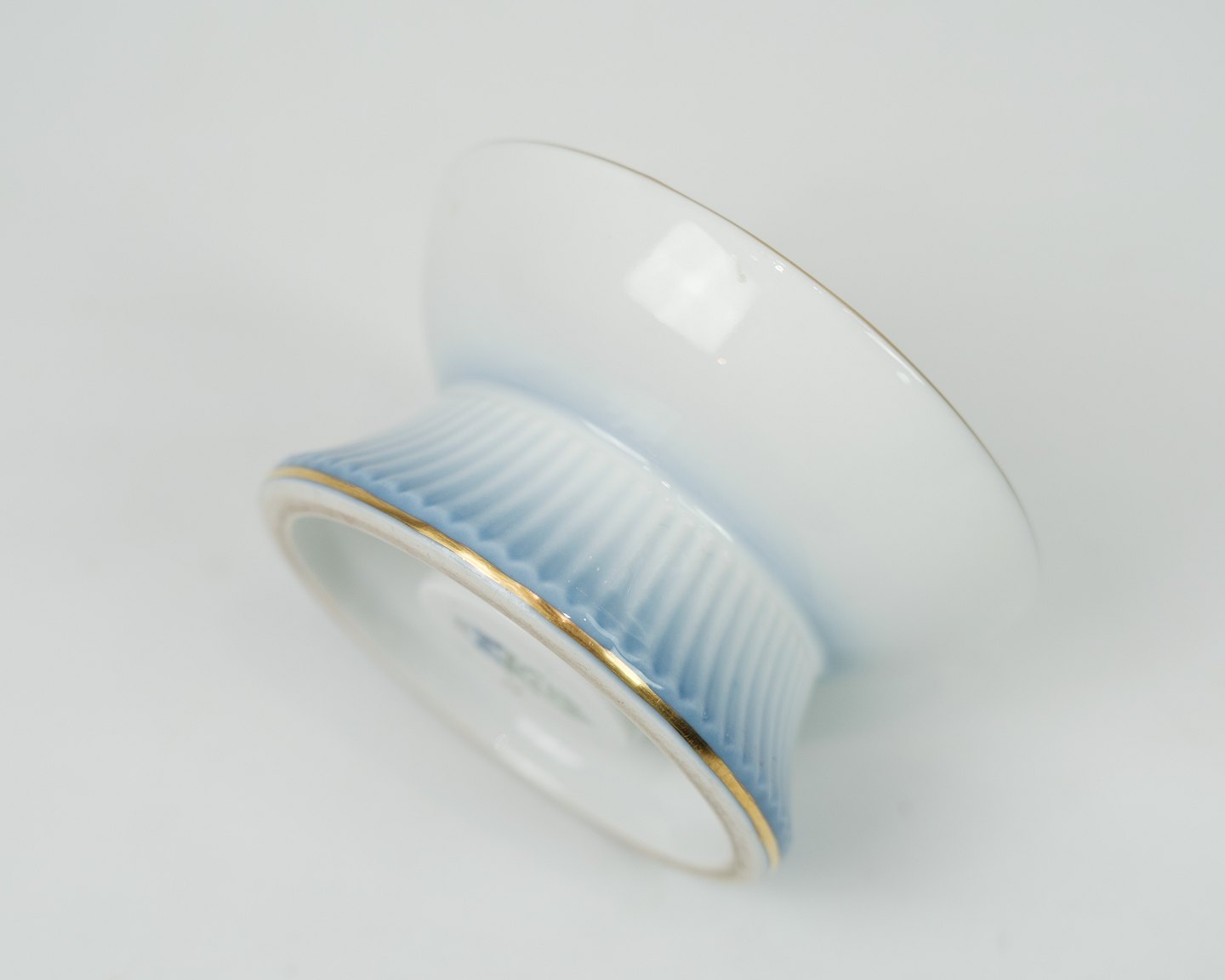 Lysestage fra Bing & Grøndahl i mågestel. Står i meget fin stand med guldkant.