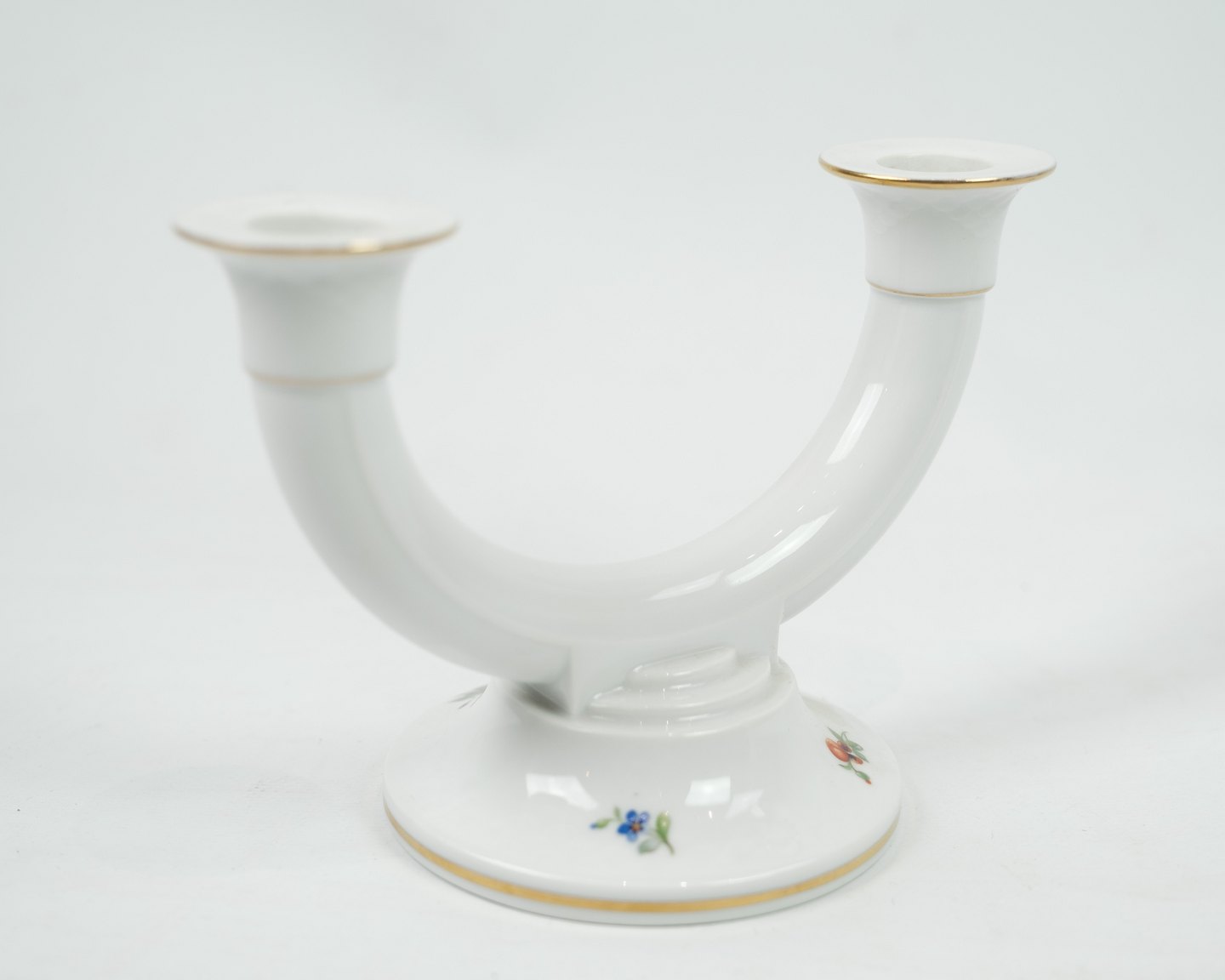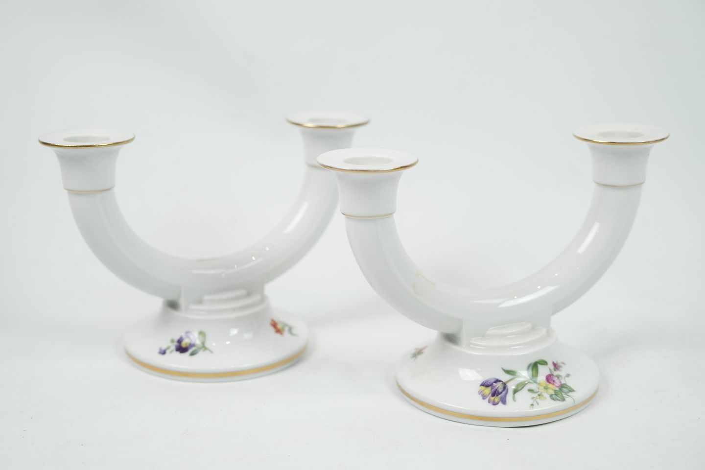 Bing & Grøndahl et par dobbelt lysestager i stellet saksisk blomst nr.235. Fuld intakt og står flot i guldet. 1 sortering