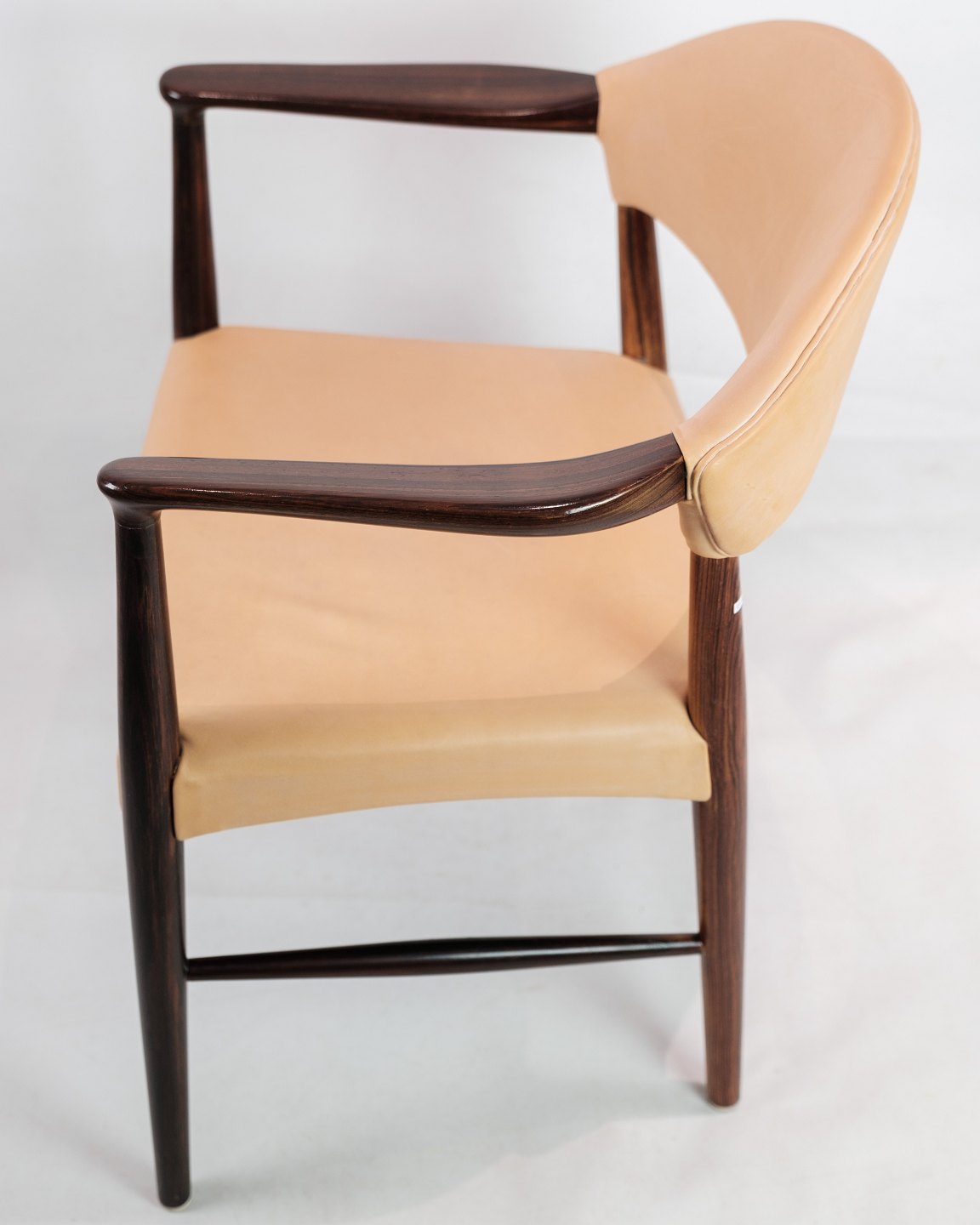 Desk chair / armchair in rosewood with light natural leather Designed by Kurt Olsen from the 1960s. Refurbished. In very good condition. A chair of very high quality.