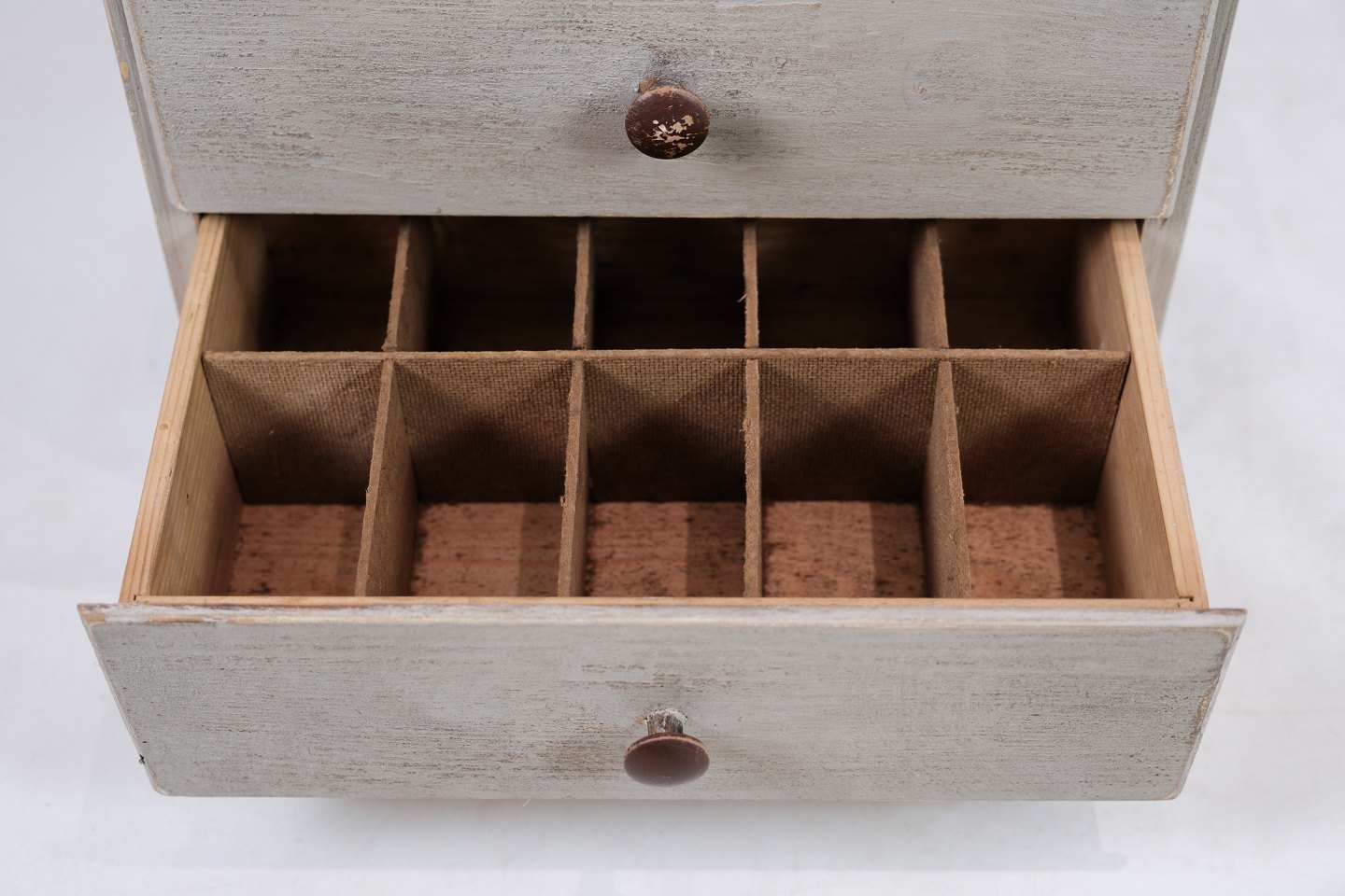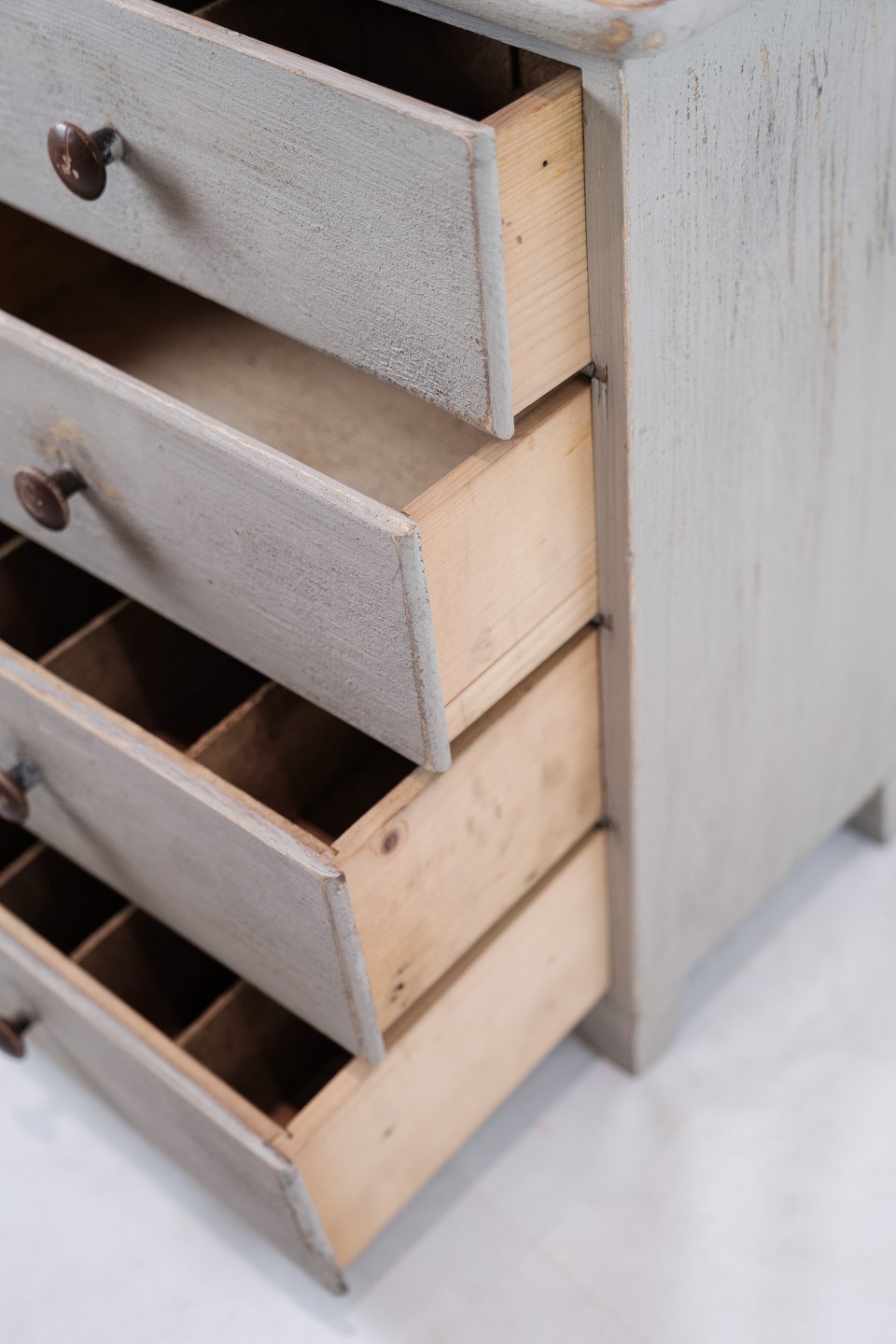 SolgtEt lille gustaviansk grå malet kommode med original bemaling fra omkring år 1840'erne. Står i meget fin original stand.