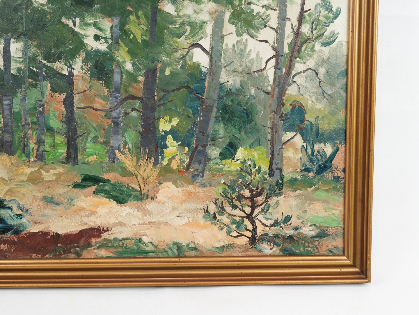 Oliemaleri lavet på lærredet med motiv af skov / træer fra omkring år 1940'erne. Står i meget fin brugt stand.