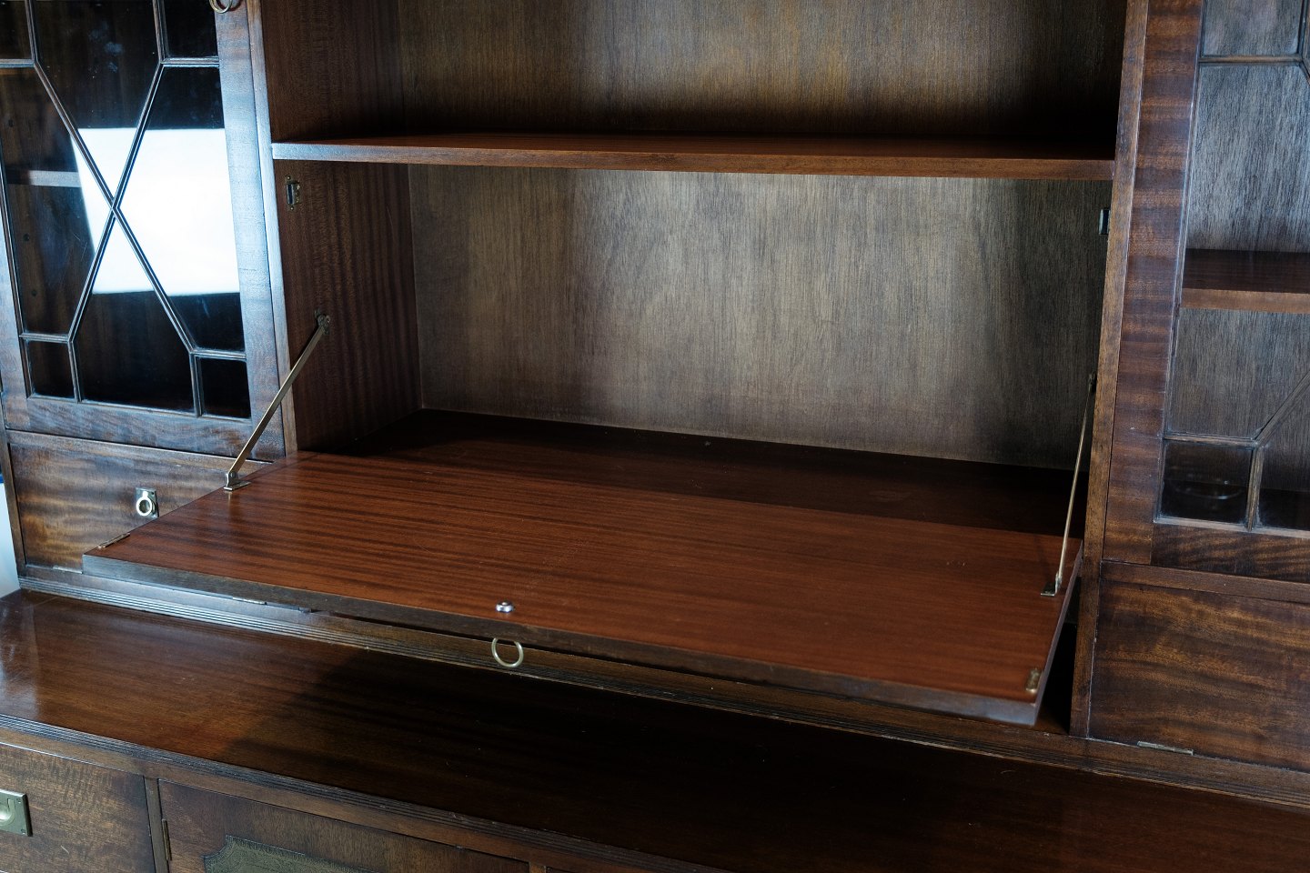 Stort antikt vitrineskab / sekretær i mahogni fra omkring 1930'erne. 5000m2 udstilling