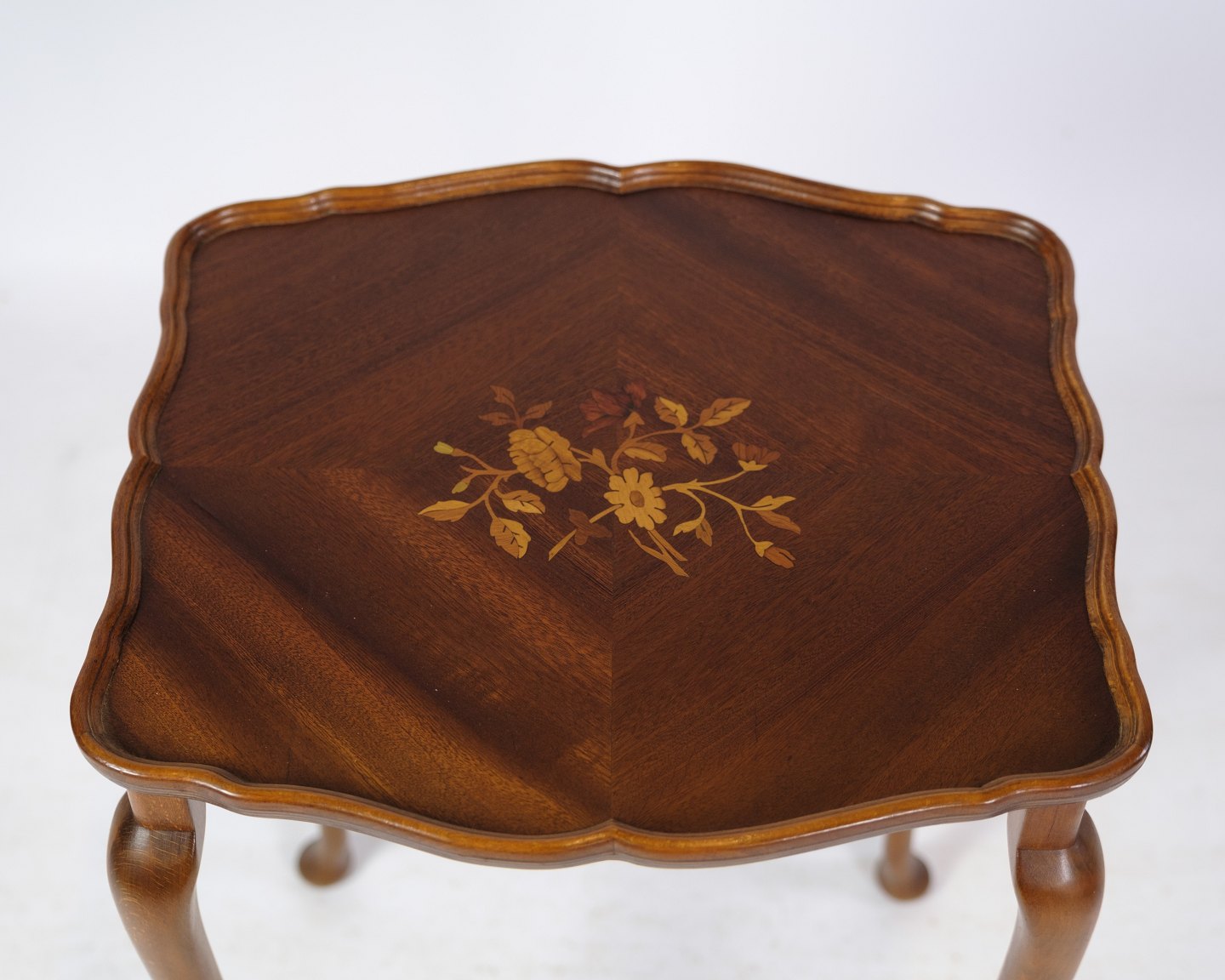 Set of 3 insert tables with neo-rococo-style marquetry from around the 1960s.