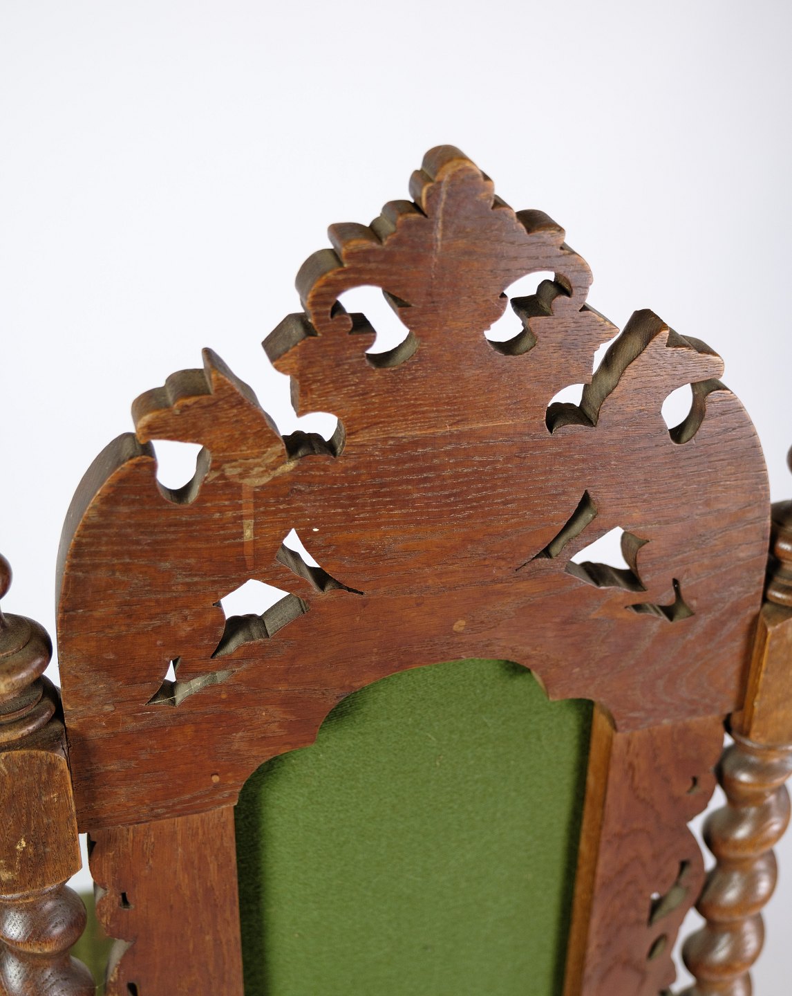Højryggede stol i massiv egetræ med stil af renæssancen fra omkring år 1910.