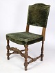2 oak chairs in Renaissance style upholstered with green velor fabric from around the 1930s