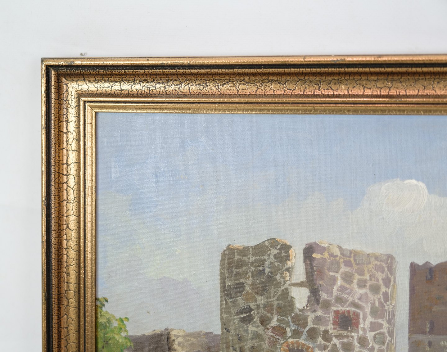 Oil painting on canvas with motif of castle in Denmark from around the 1920s. Signed