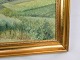 Oliemaleri på lærredet med motiv af landsby med guldramme fra omkring år 1930'erne.