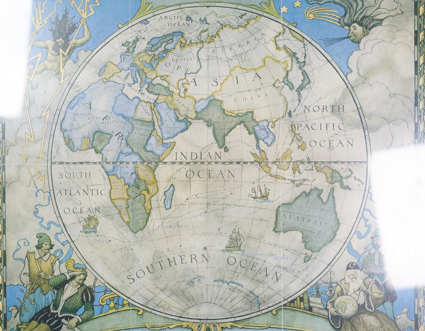 A map of the eastern hemisphere entitled "Map of discovery" from around the 1920s.