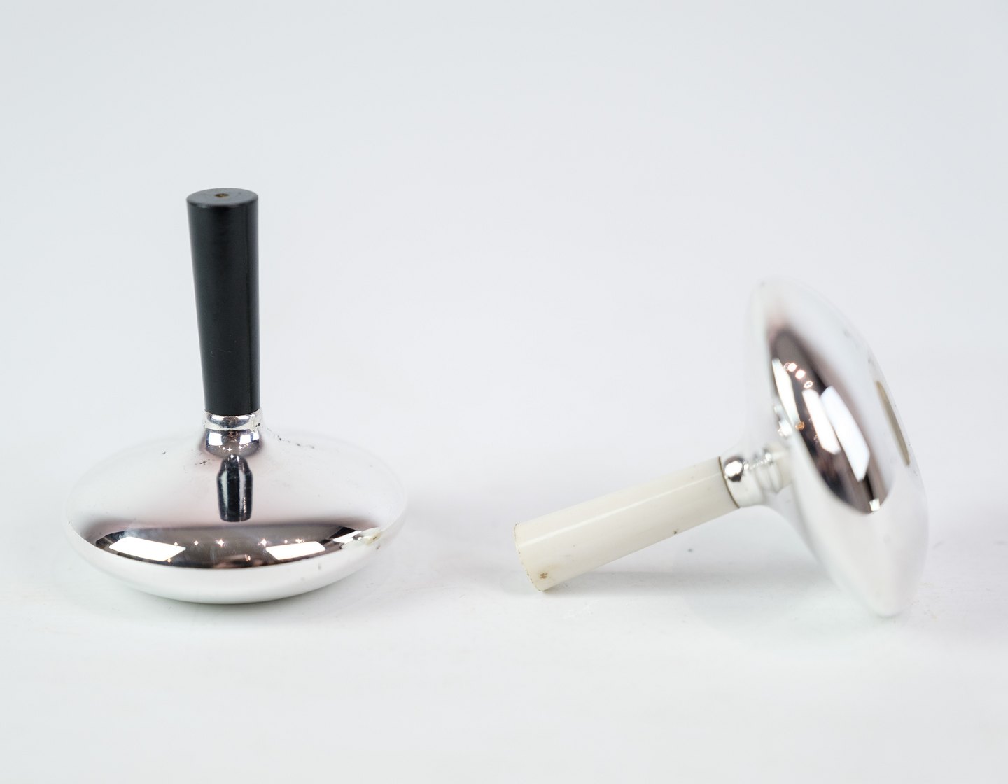 Salt og peber sæt, af dansk design i sølvplet, signeret "Danmark EPNS HH ATLA COHR". Sættet står intakt med original prop.