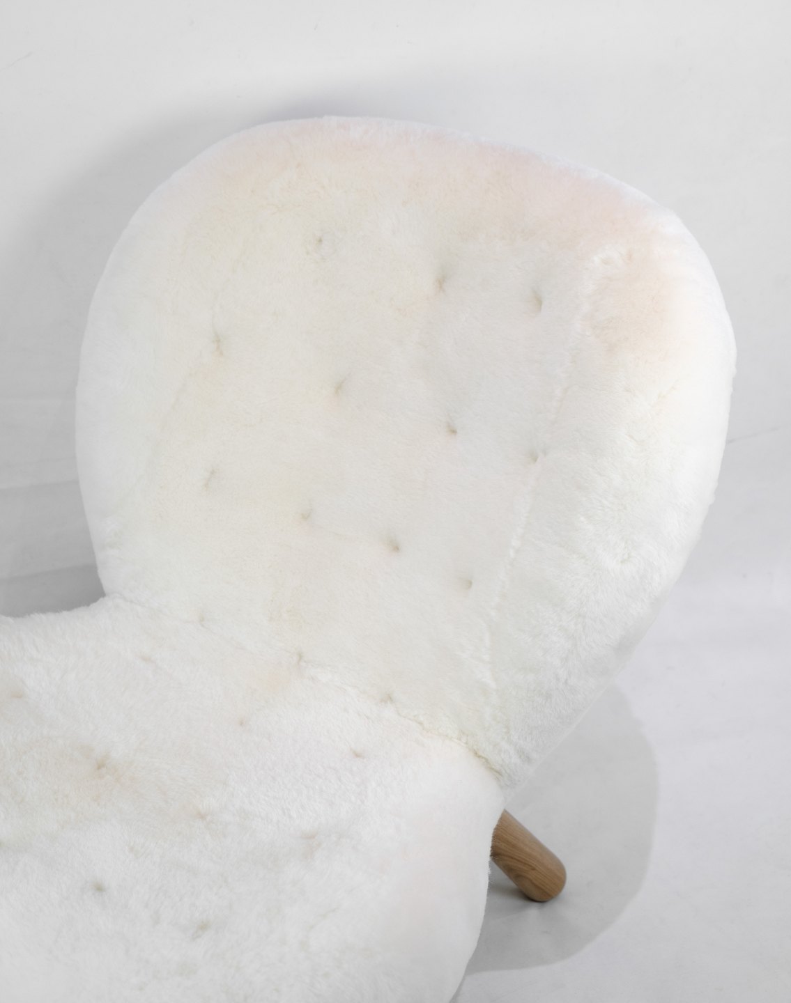 SoldThe Arctander chair known as the "muslingestolen" designed by Philip Arctander with sheepskin. A lounge chair of high quality and incredibly good seat comfort with oak legs.