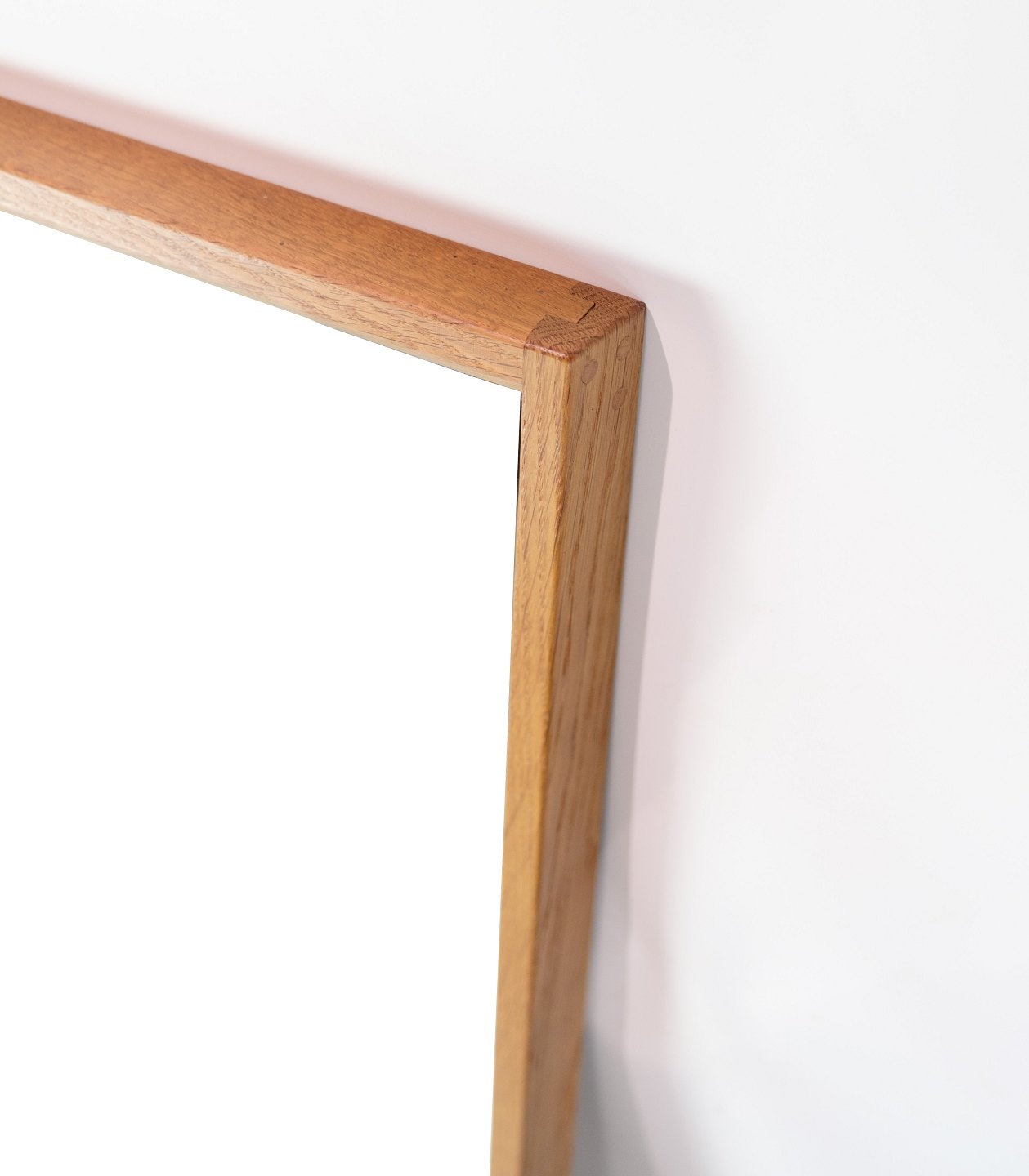 Aflangt spejl i egetræ, designet af Aksel Kjaersgaard hos Odder møbler fra 1960'erne.