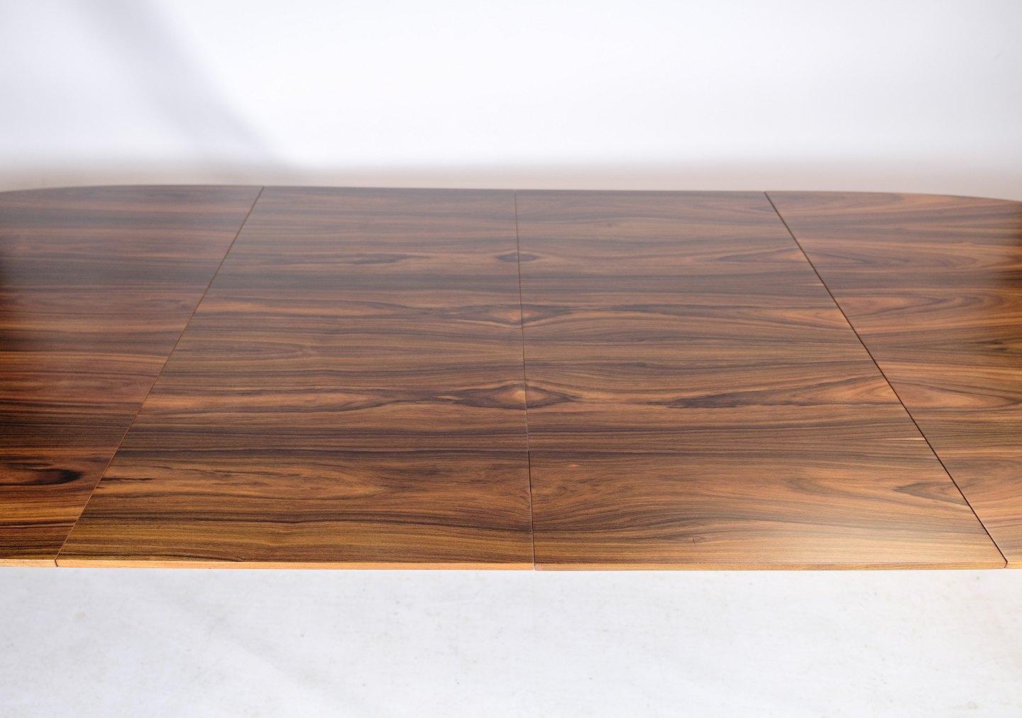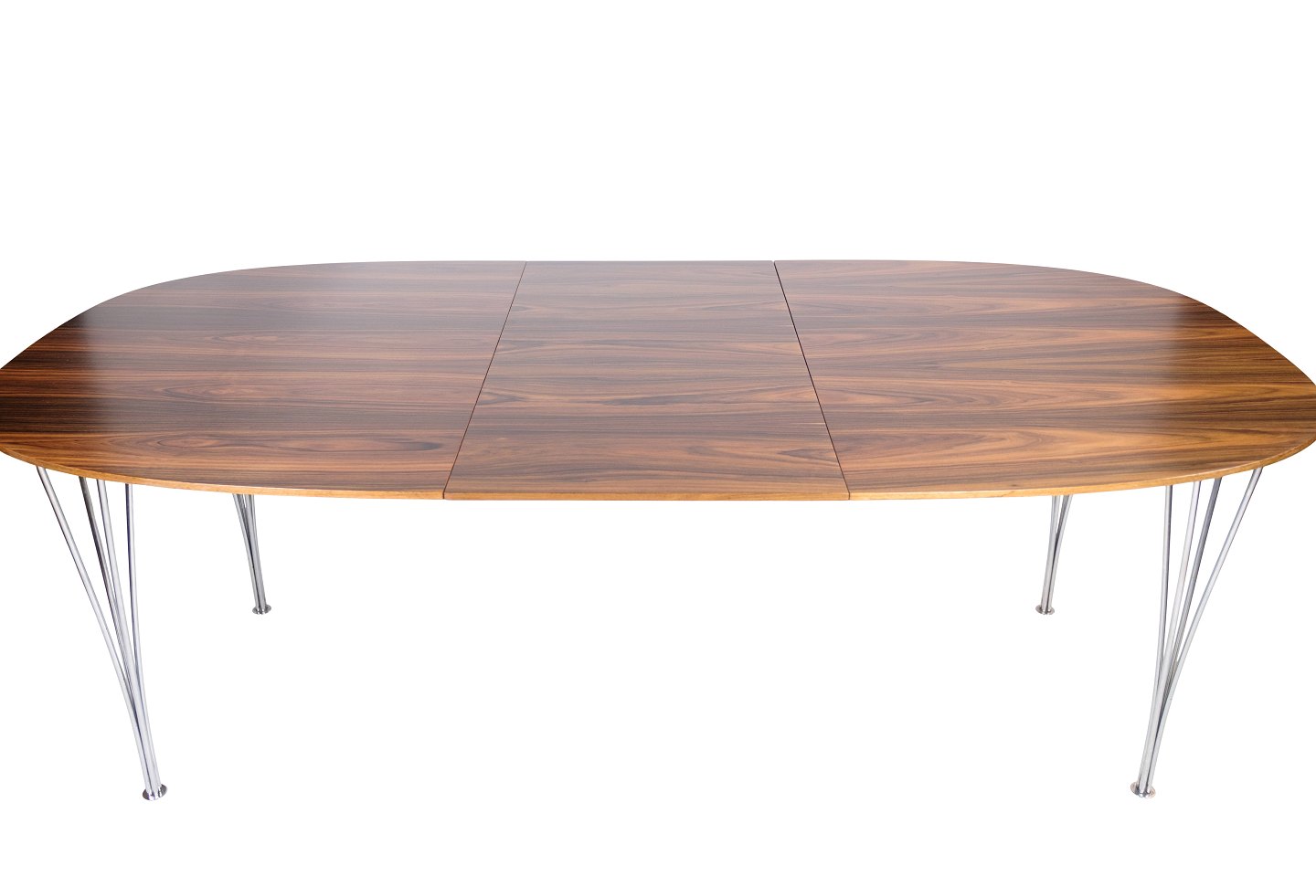 SoldDining table, designed by Piet Hein & Bruno Mathsson with rosewood veneer and steel legs produced by Fritz Hansen. The table is from the 1960s and is in incredibly nice condition.