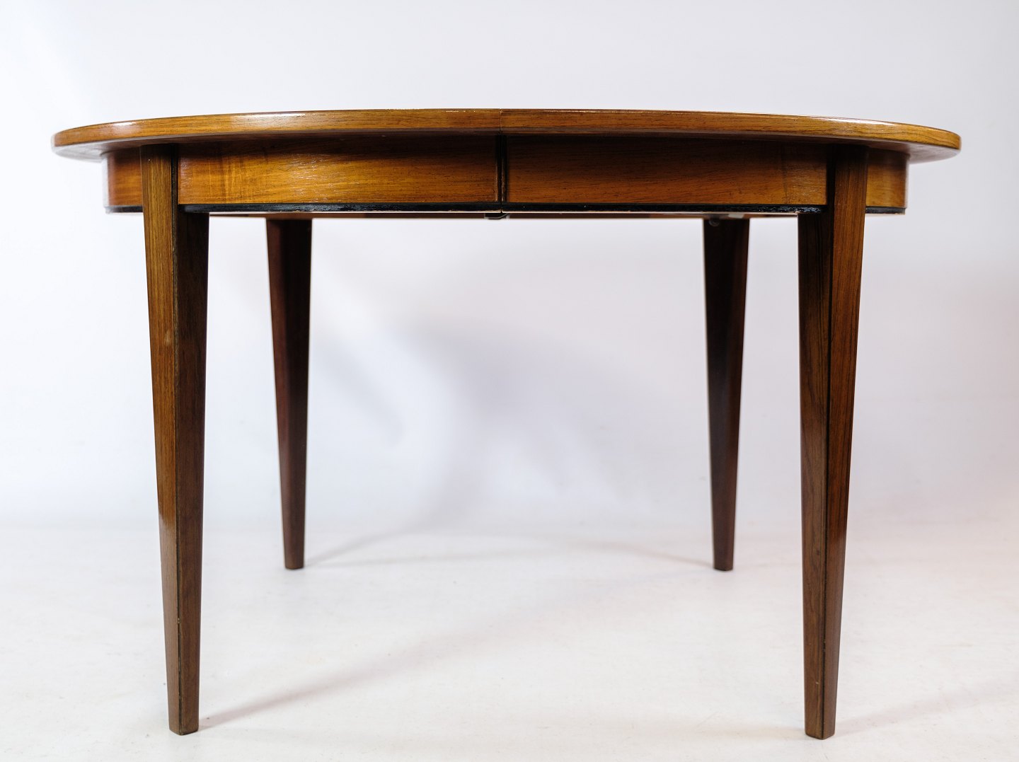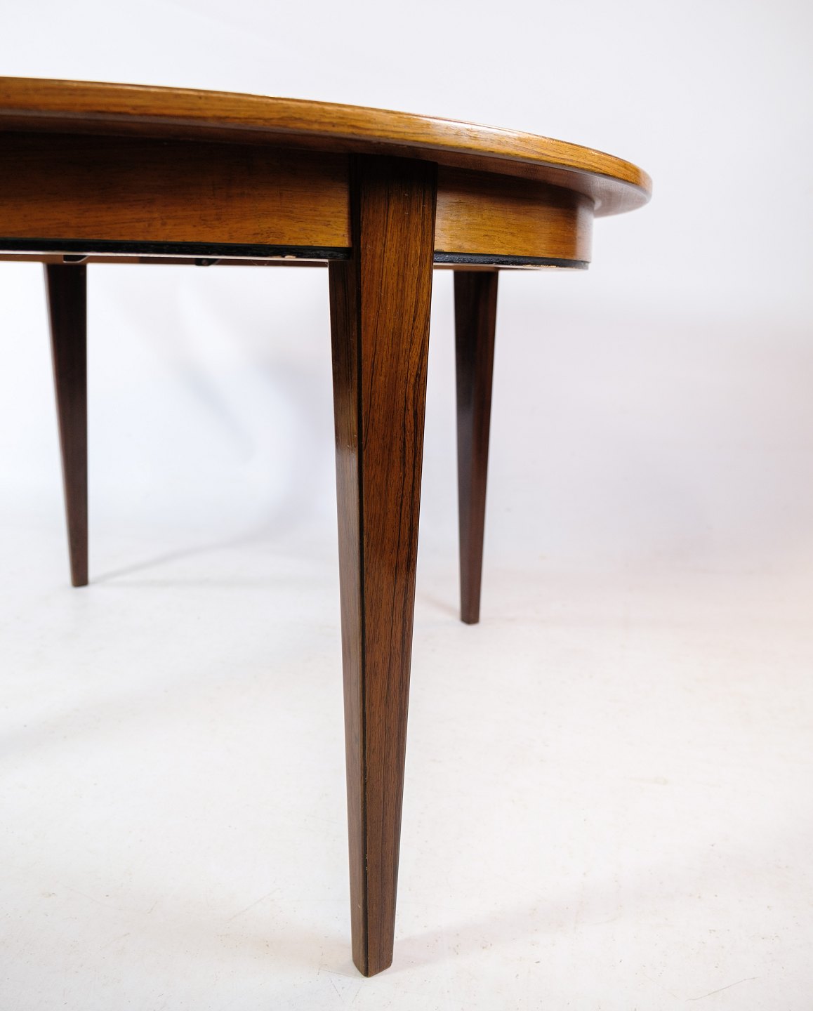 Spisebord, designet af Omann Junior i træsorten palisander fra omkring 1960'erne. Hvis det ønskes kan vi på vores professionelle værksted farve tillægspladerne ens farve.