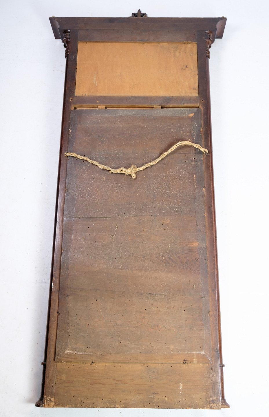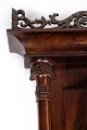 Mirror of hand-polished mahogany, from the late Empire period with carvings made in Denmark from around the 1840s.