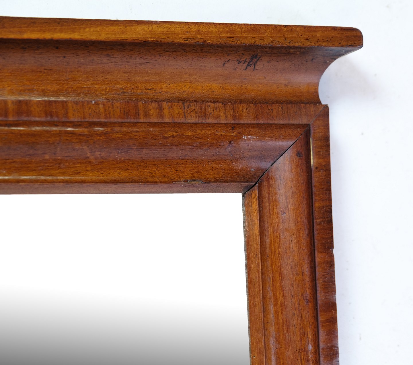 Spejl af hånd poleret mahogni, med messing dekoration, lavet i Danmark fra omkring 1880'erne