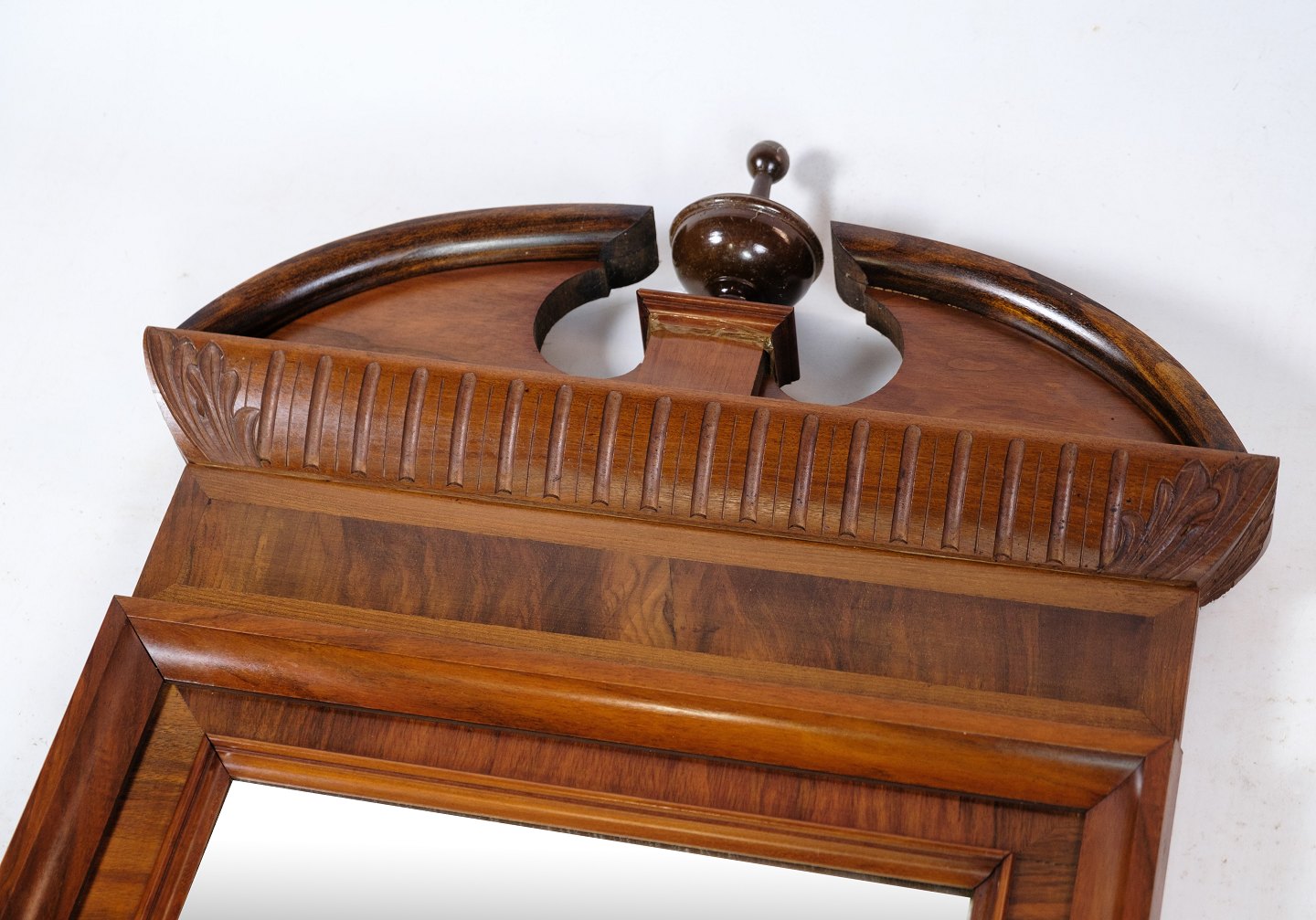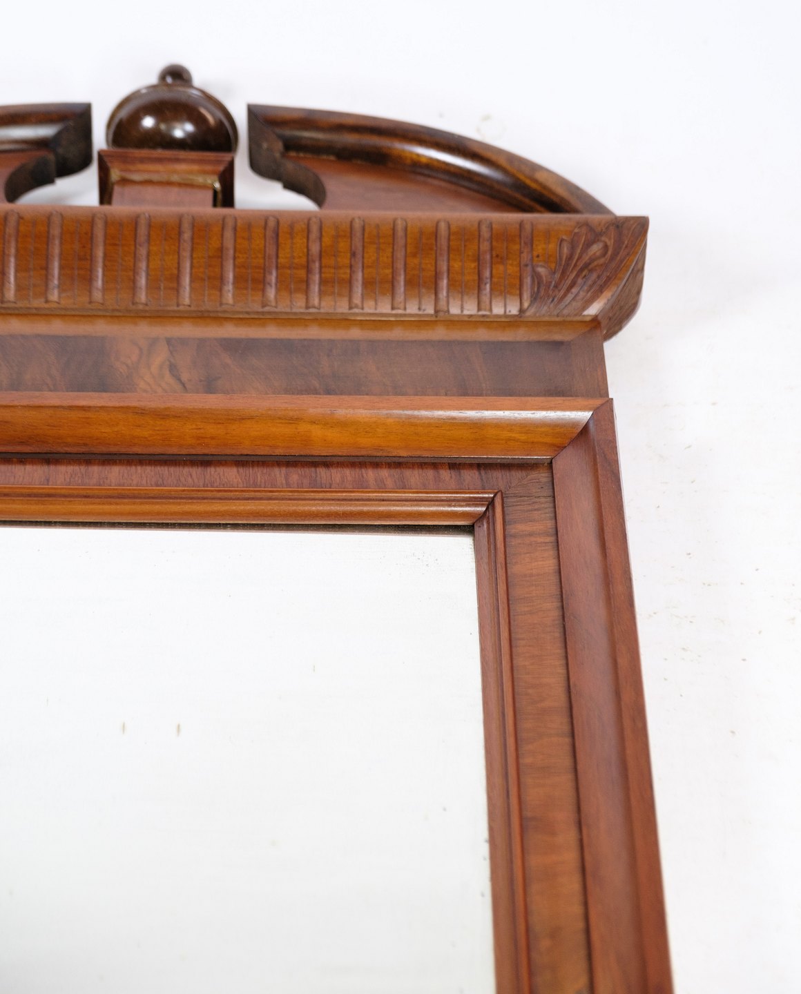 Mirror of hand-polished mahogany, with carvings, made in Denmark from around the 1880s