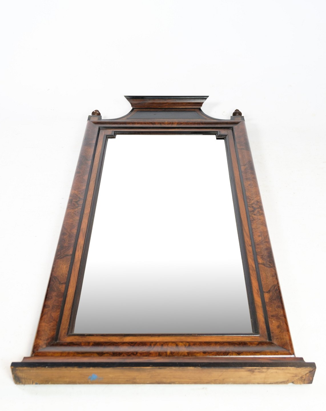 SoldMirror of hand-polished mahogany, with carvings, made in Denmark from around the 1880s