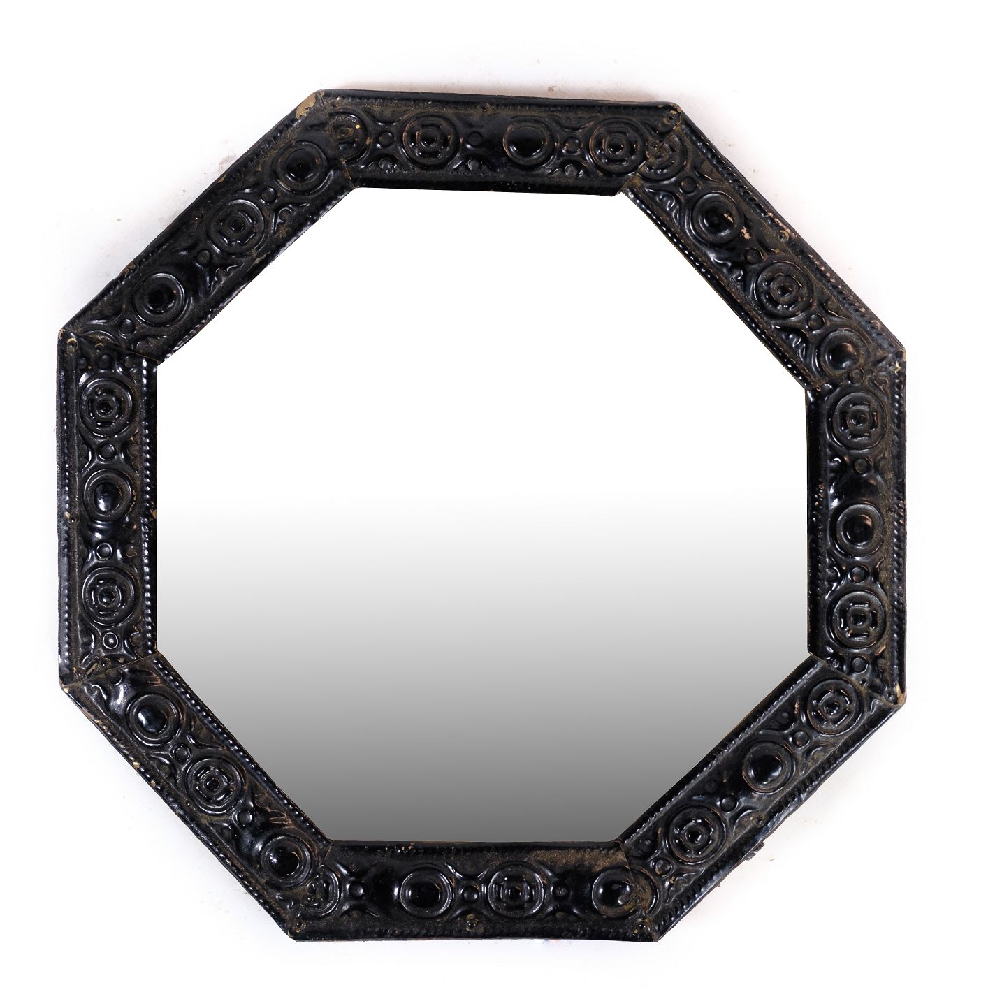 Antikt spejl i mørkt træ fra omkring år 1890'erne.