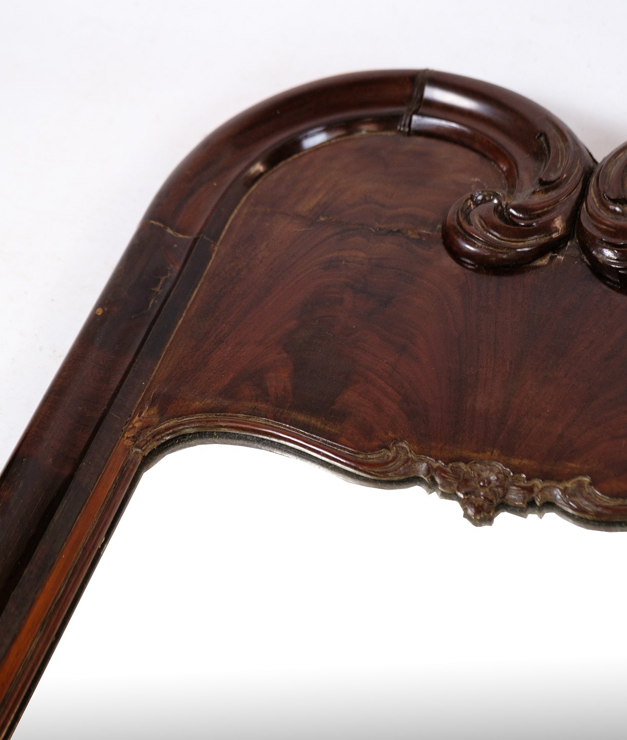 Antique mirror with hand polished mahogany originally from Denmark around the 1880s.