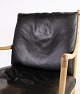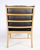 Stolene har flotte sorte læderhynder, der er polstret for optimal komfort. Læderet er af høj kvalitet og giver et klassisk og elegant look til stolene. Sædet på stolen er håndvævet i flet, hvilket giver en smuk og unik tekstur til stolen, og sædet er fastgjort til stellet med fine detaljer i messing, der tilføjer en ekstra touch af elegance.