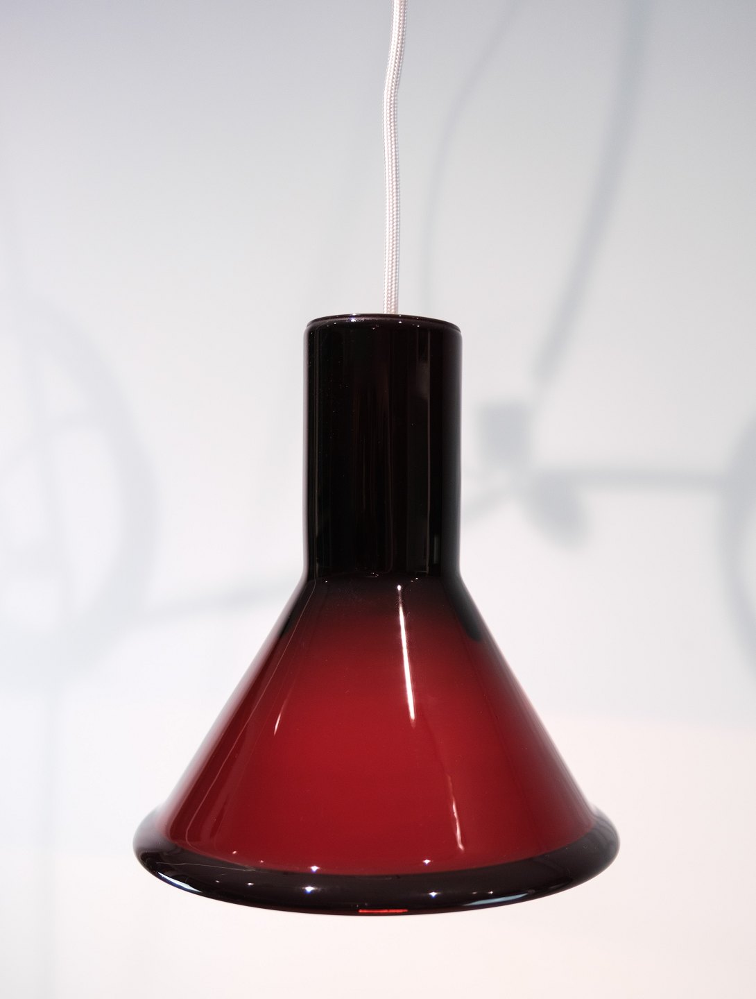 SoldA pair of pendants from Holmegaard in reddish colors from around the 1950s.