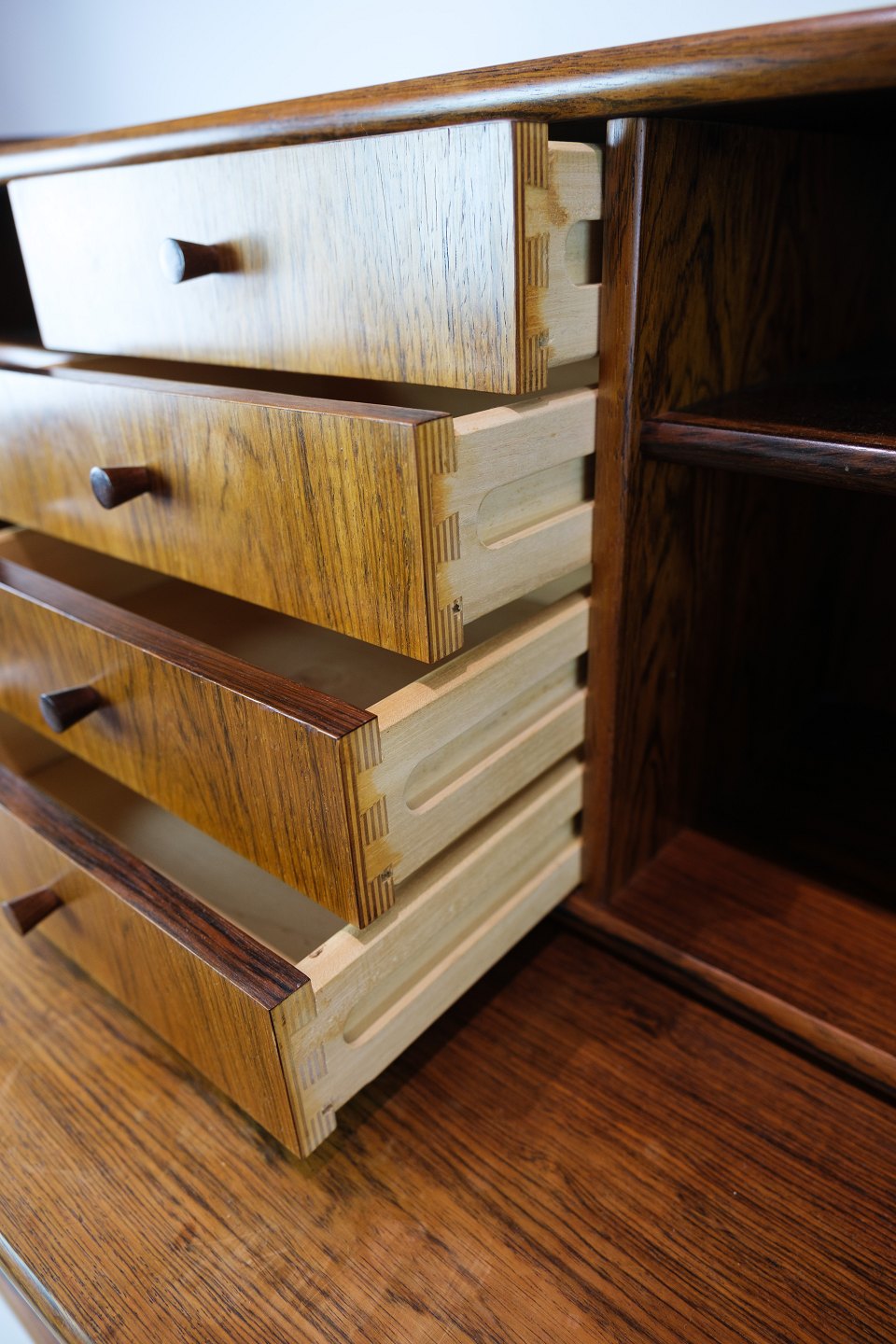 SoldSmall chatol in rosewood of Danish design from around the 1960s. Looks incredibly nice in the stand with 3 drawers at the bottom and 4 drawers at the top with shelves on each side. In addition to this, the chartolette has a pull-out.