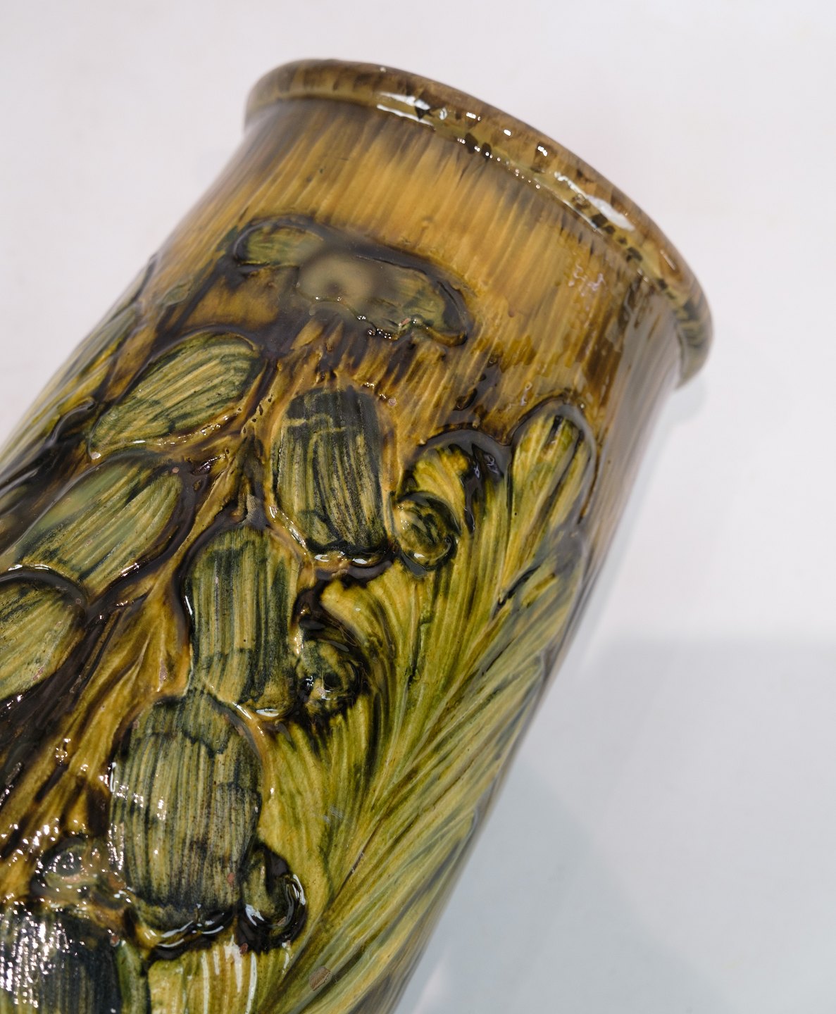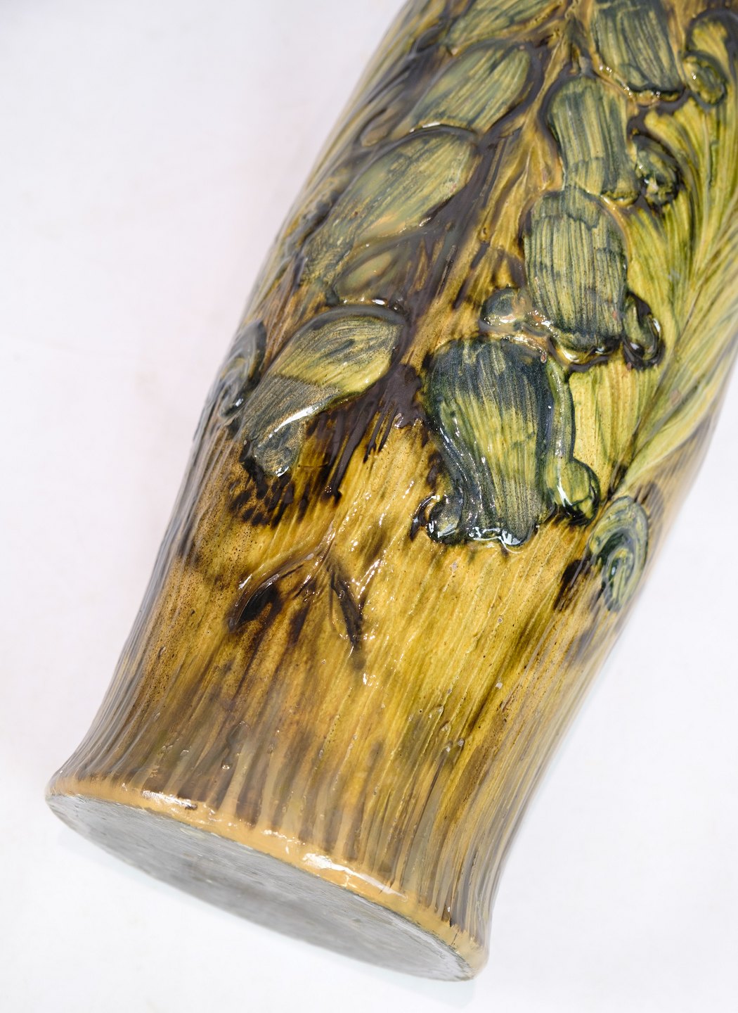 Denne store gulvvase i Danico keramik er et bemærkelsesværdigt stykke fra omkring 1960'erne. Vase, med sin blanding af gule og grønlige farver, udstråler en unik og livlig æstetik, der er karakteristisk for denne æra.