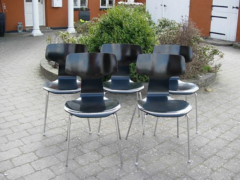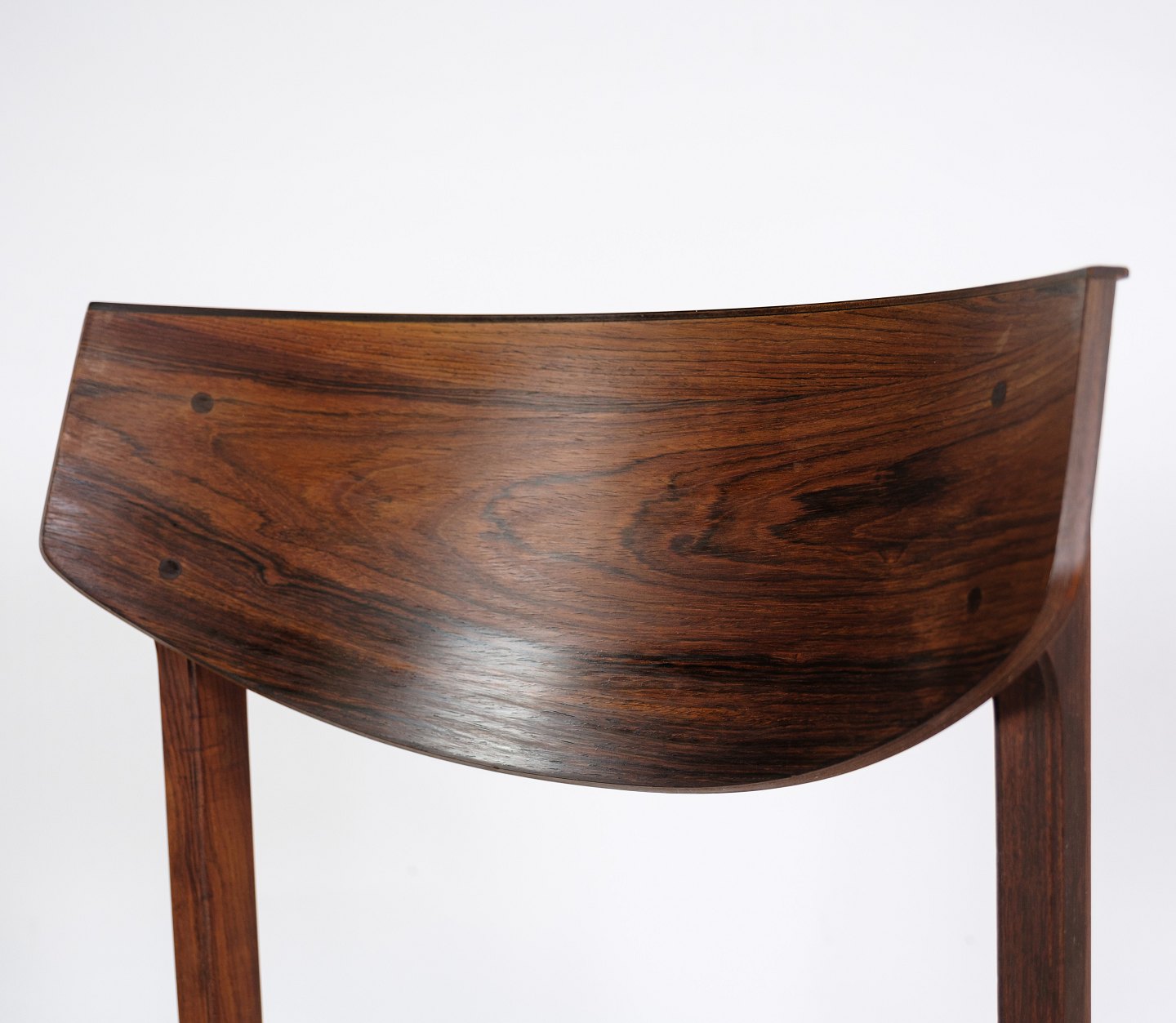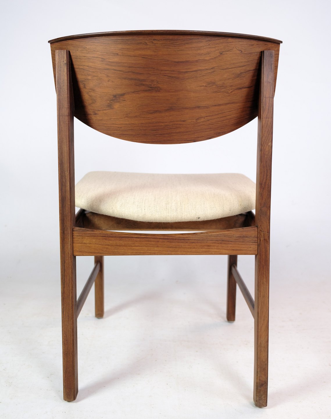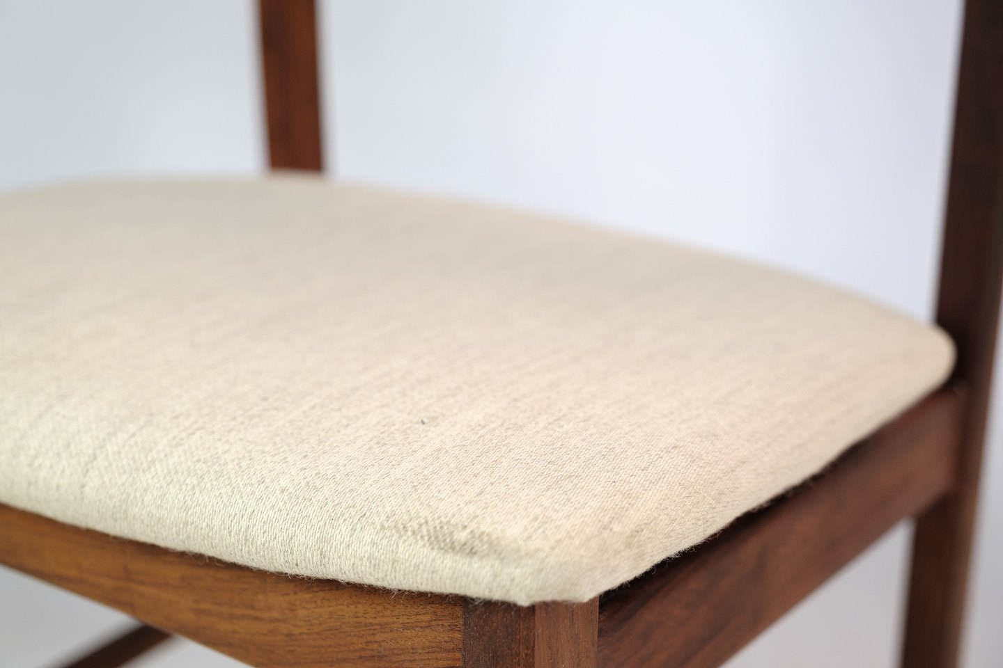 SoldSet of six dining chairs in rosewood with light fabric of Danish design from around the 1960s.
