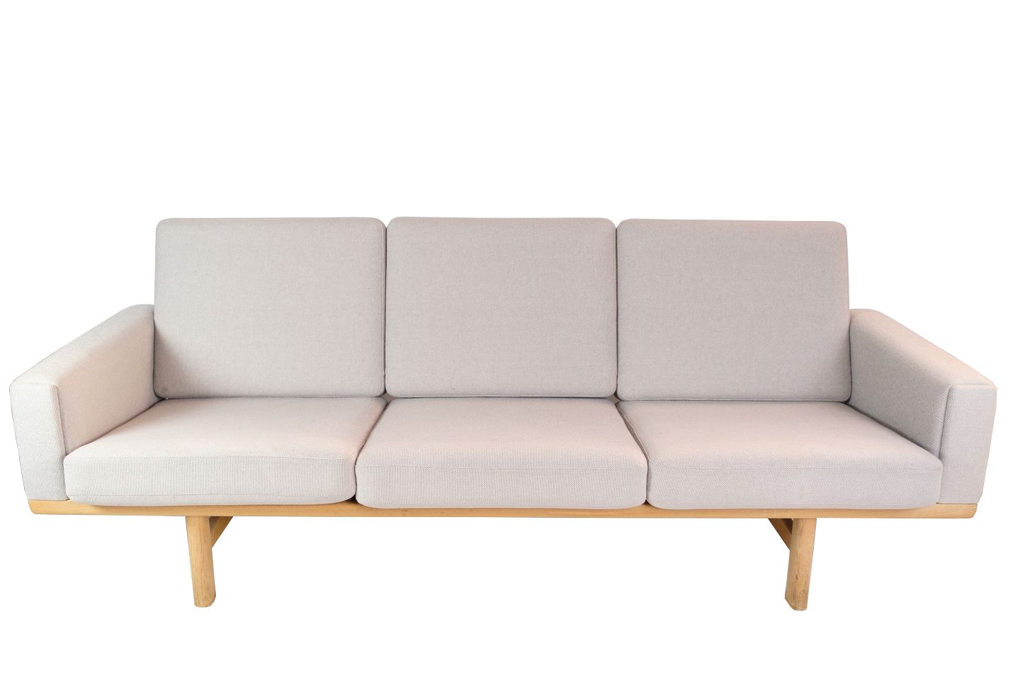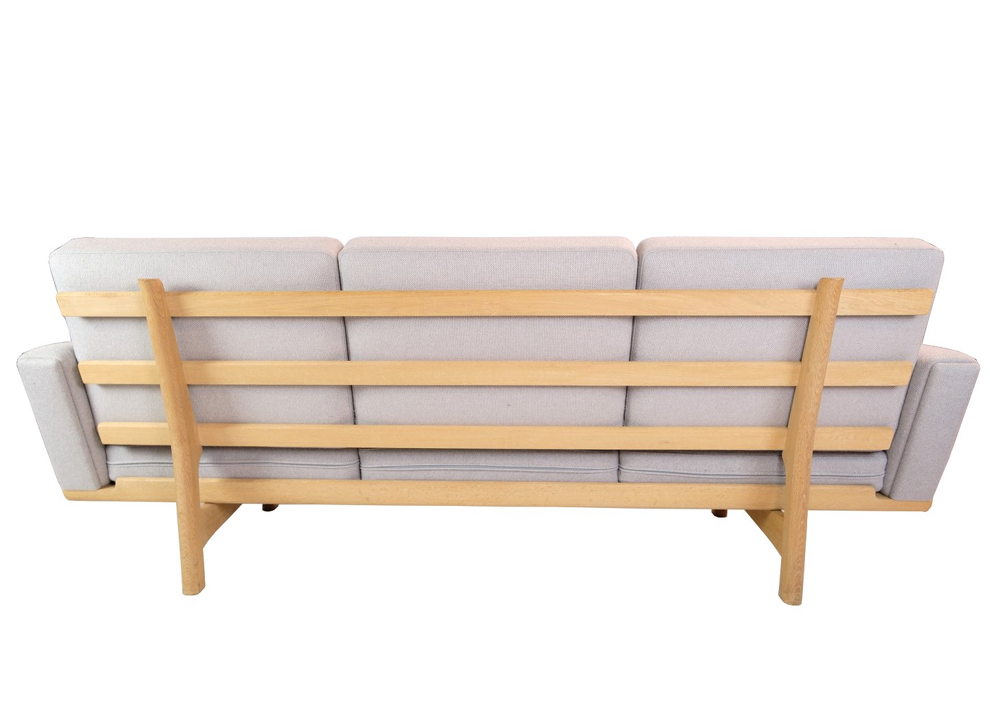 SolgtSofaen GE-236/3, designet af Hans J. Wegner og fremstillet af Getama i 1960erne, er en elegant og stilfuld trepersoners sofa. Den er polstret med et lyst uldstof, der giver den et blødt og behageligt sæde. Rammen er fremstillet af solidt egetræ, der giver sofaen et robust og holdbart udseende. Sofaen vil være et fremragende valg for dem, der ønsker at tilføje et touch af dansk design og håndværk til deres hjem.