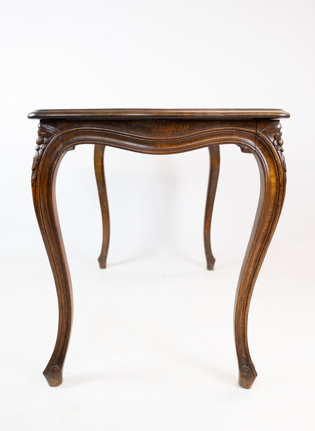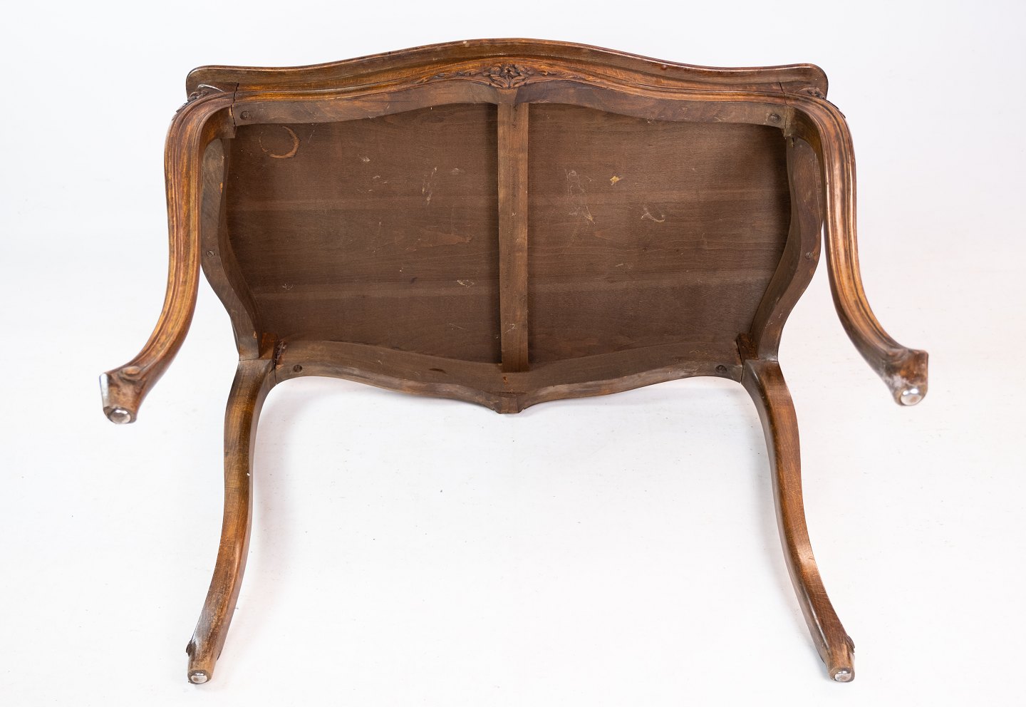 Antikt sofabord i mahogni med udskæringer fra omkring 1930'erne. Vil blive istandsat inden eventuel salg.