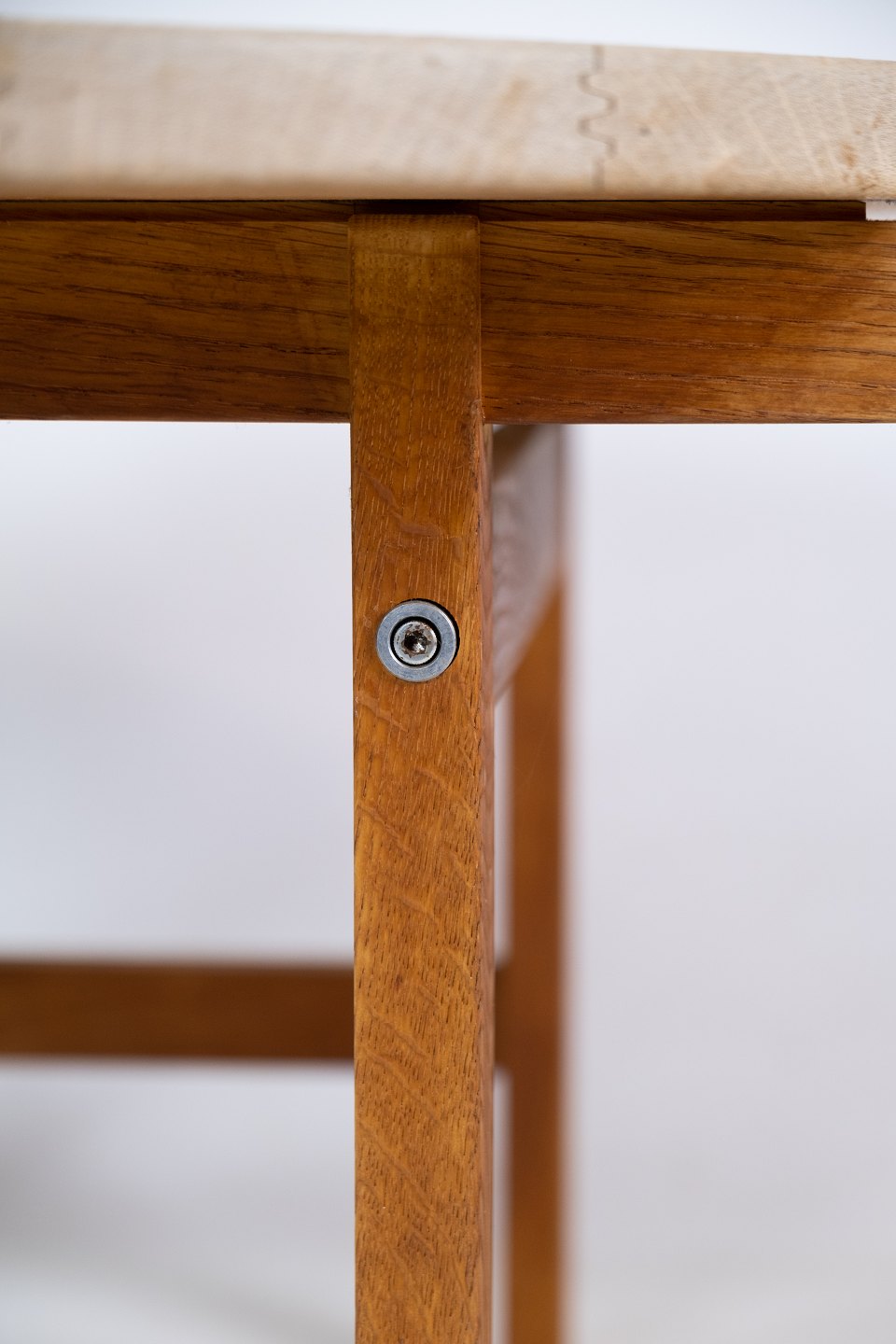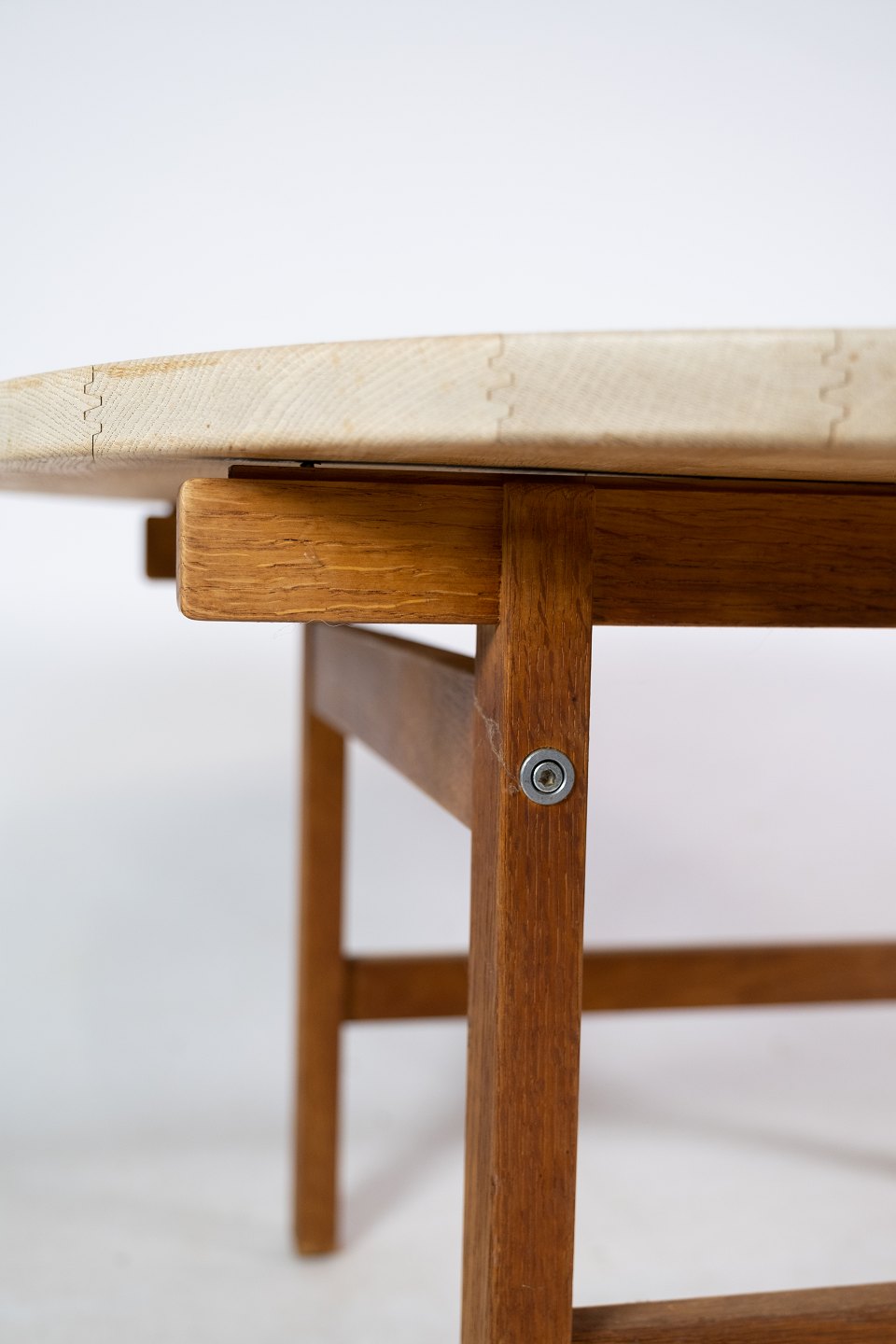 Round coffee table, designed by Hans J. Wegner (1914-2007) of solid oak manufactured by PP Møbler. The table is soap-treated but can also be oiled.