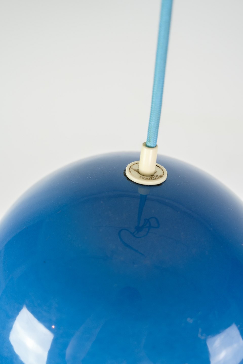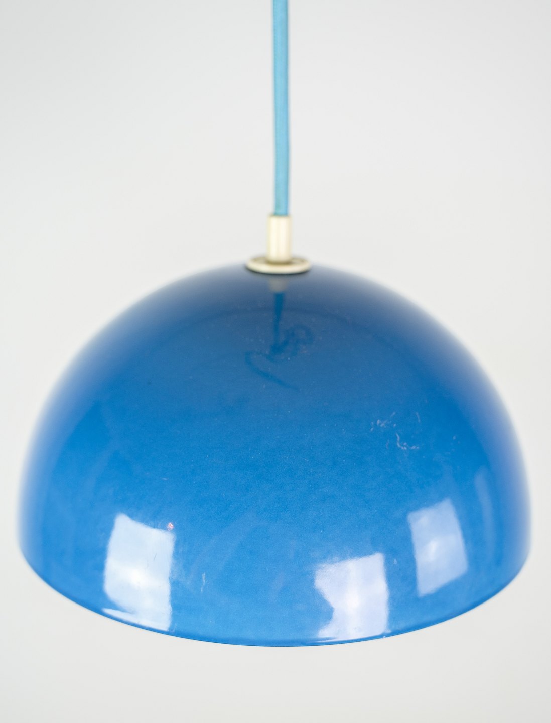 Flowerpot loftslampe, designet af Verner Panton (1926-1998) VP1 i lyseblå farve fra 1970'erne.