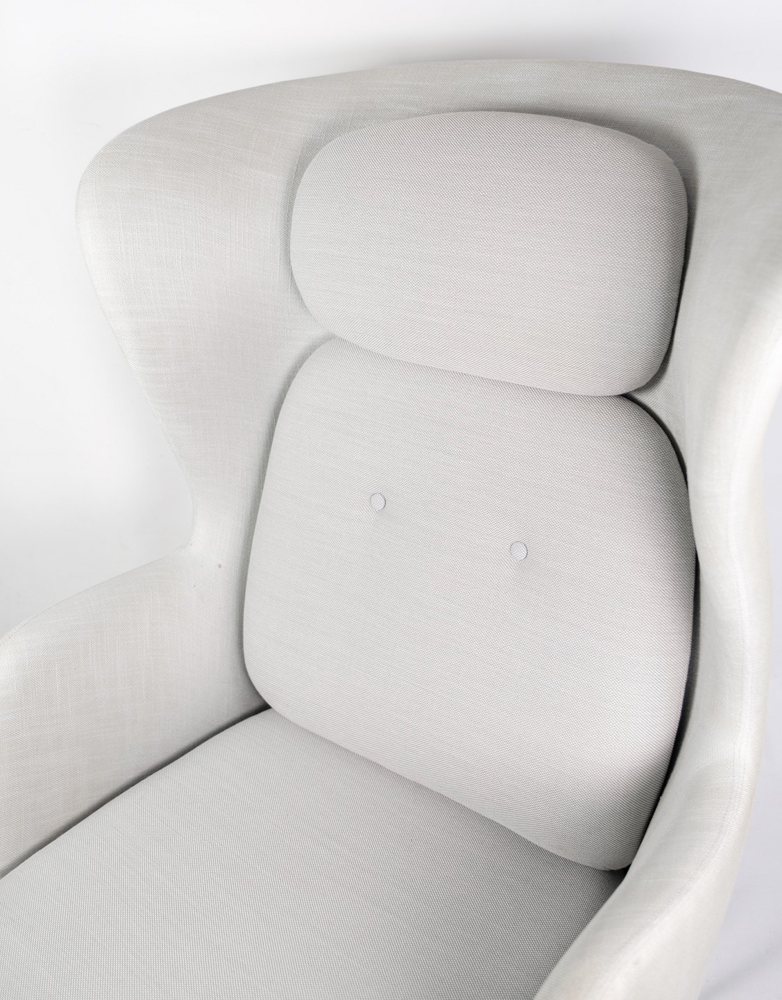 Armchair, designed by Jaime Hayon, manufactured by Fritz Hansen. There is a small hole in the fabric, therefore the chair must be reupholstered either in fabric or leather according to preference. You therefore have the opportunity to choose the fabric or leather to be used. Contact for price.