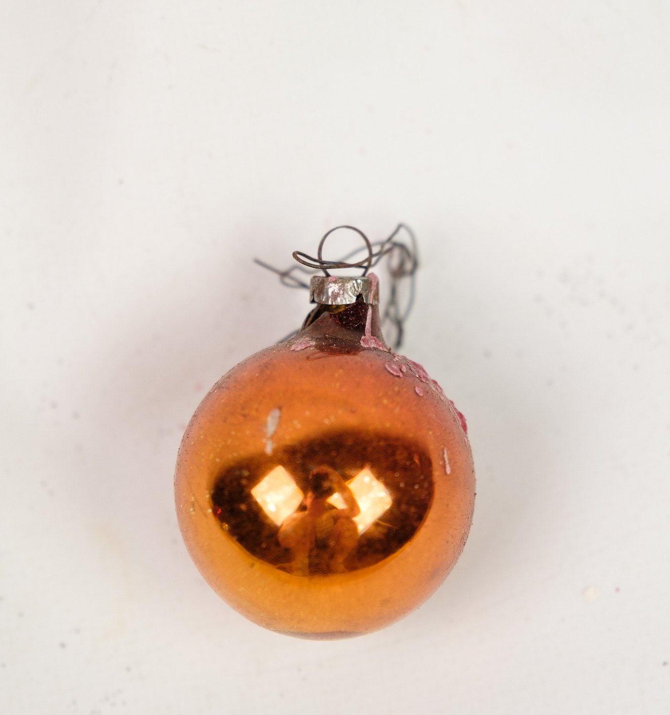 SolgtAntik julekugle i en orange farve fra omkring 1930'erne.