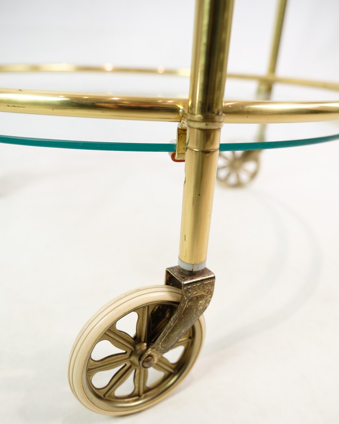 Rullebord / barbord i messing med glasplader i super fin kvalitet fra omkring 1970'erne.