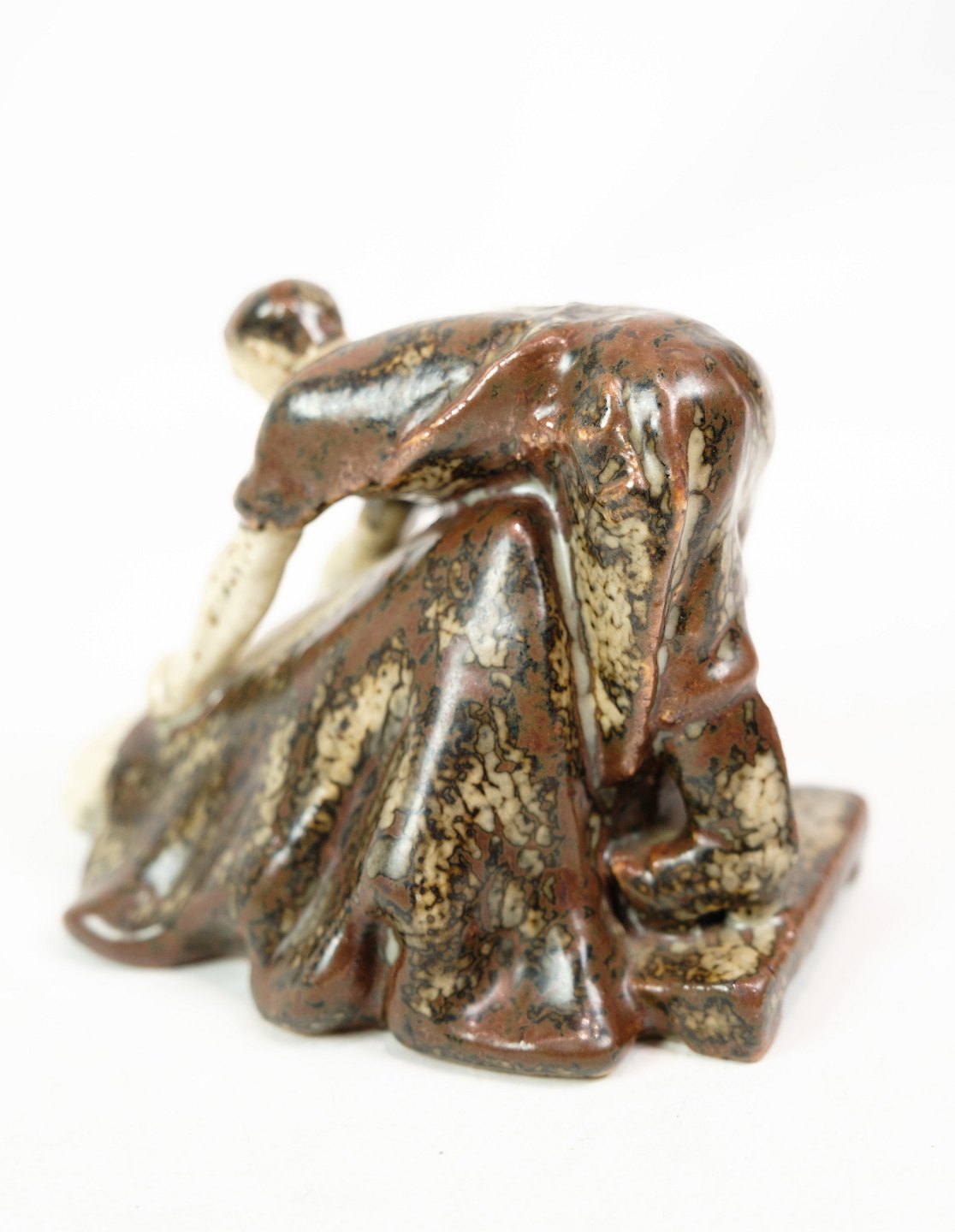 Keramik figur, designet af Hugo Liisberg og fremstillet af Saxbo keramik fra omkring 1960'erne. Figuren har en flot glasur i hvide og brunlige farver.