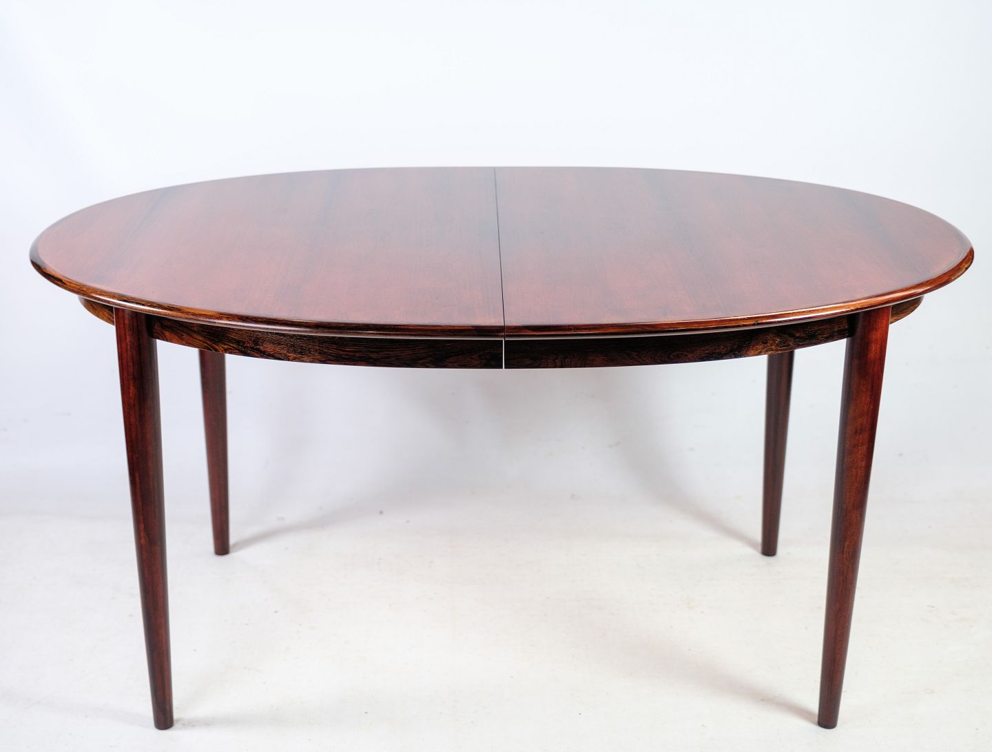 Oval dining table in rosewood, designed by Arne Vodder from around the 1960s.