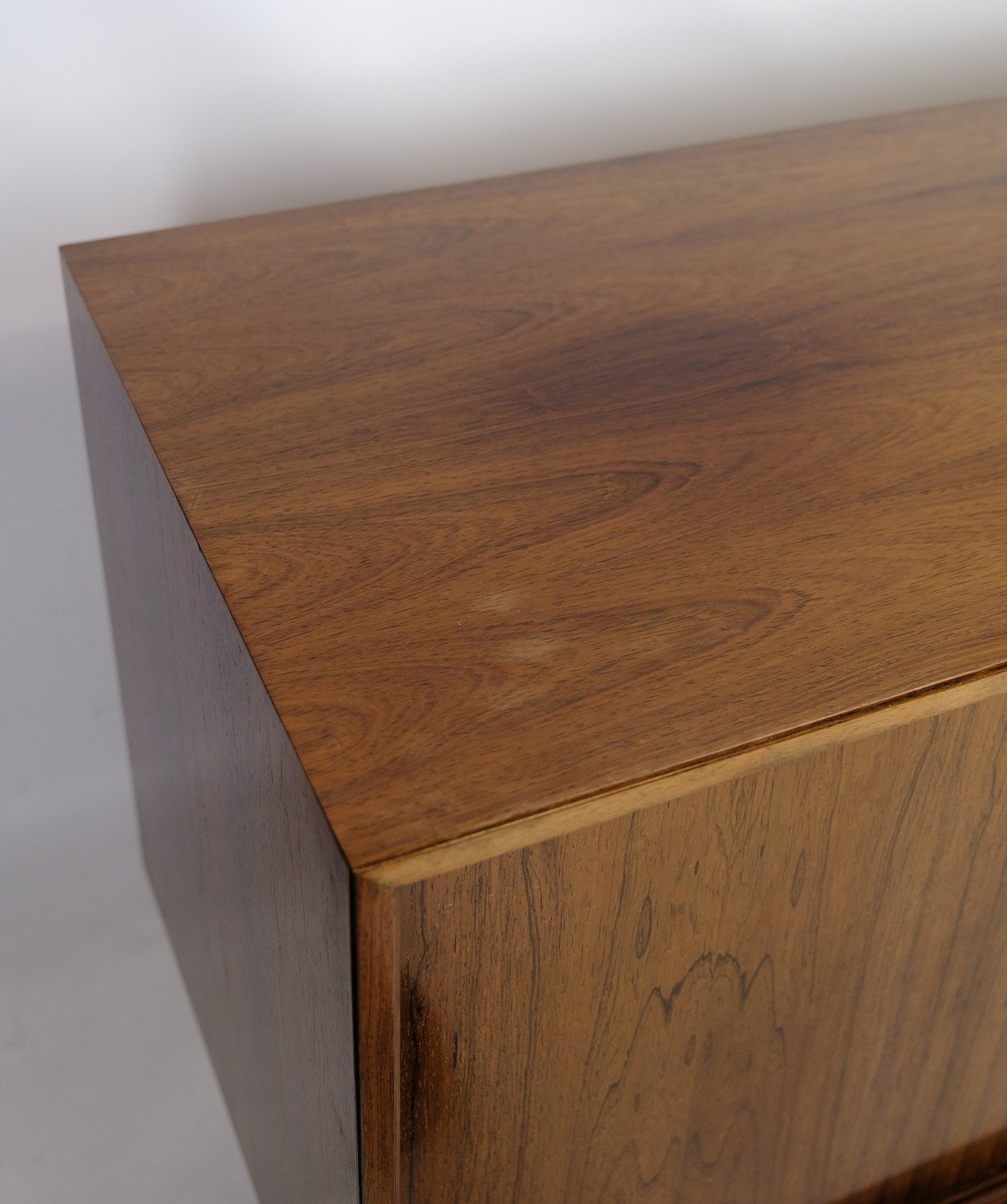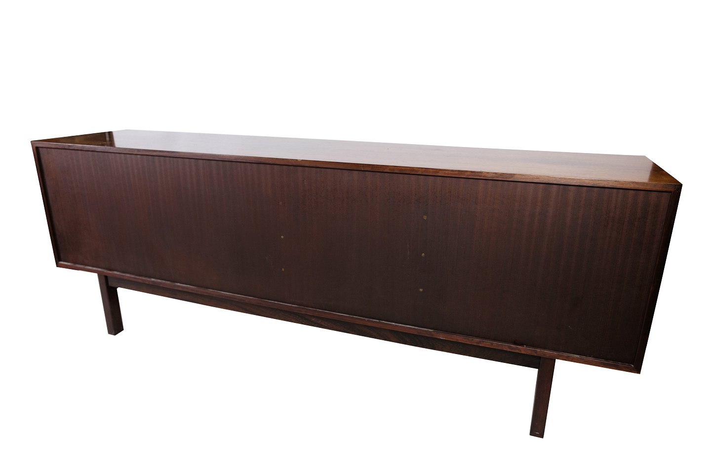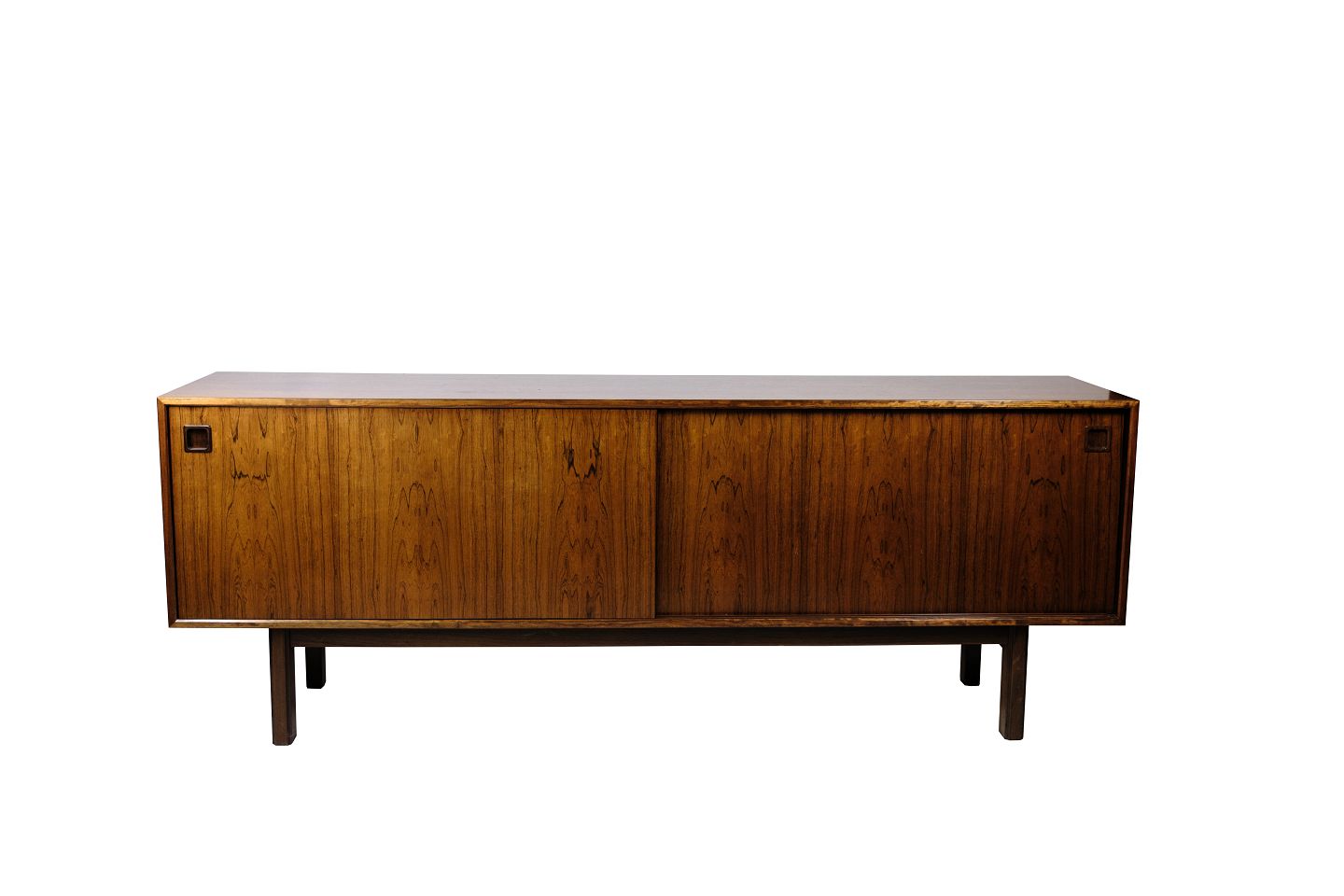With its low-profile design and rosewood sliding doors, the sideboard exudes a simple elegance that fits perfectly with the style of Scandinavian modernism. The natural beauty and warm colors of rosewood create a welcoming atmosphere in any room.