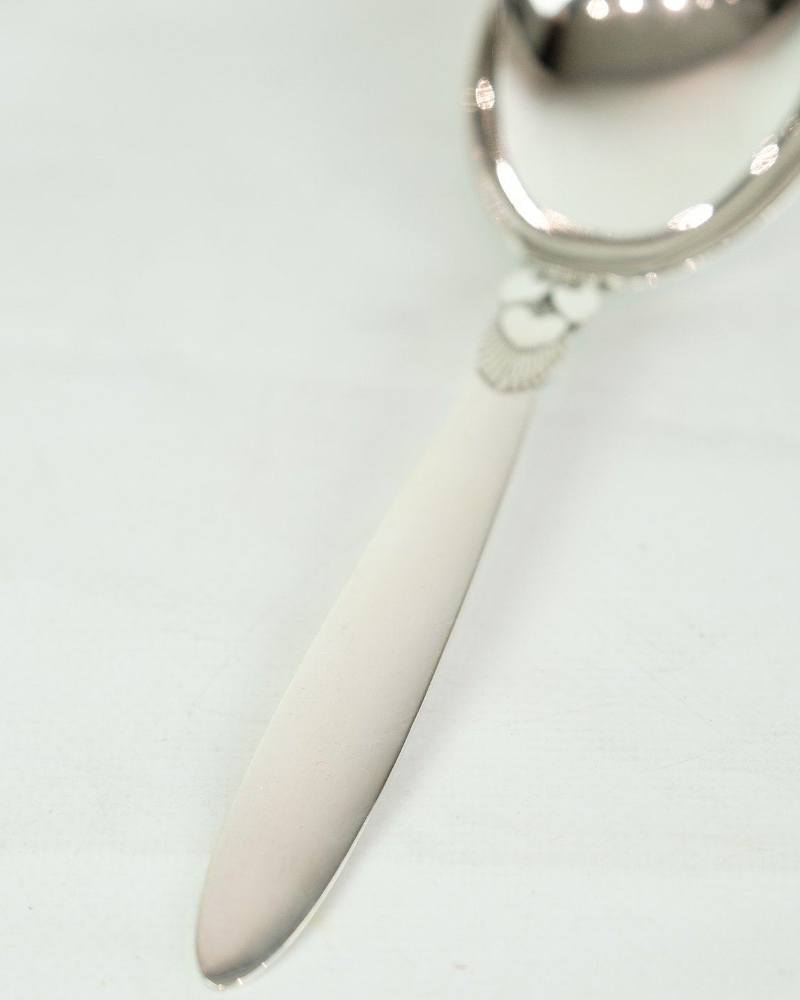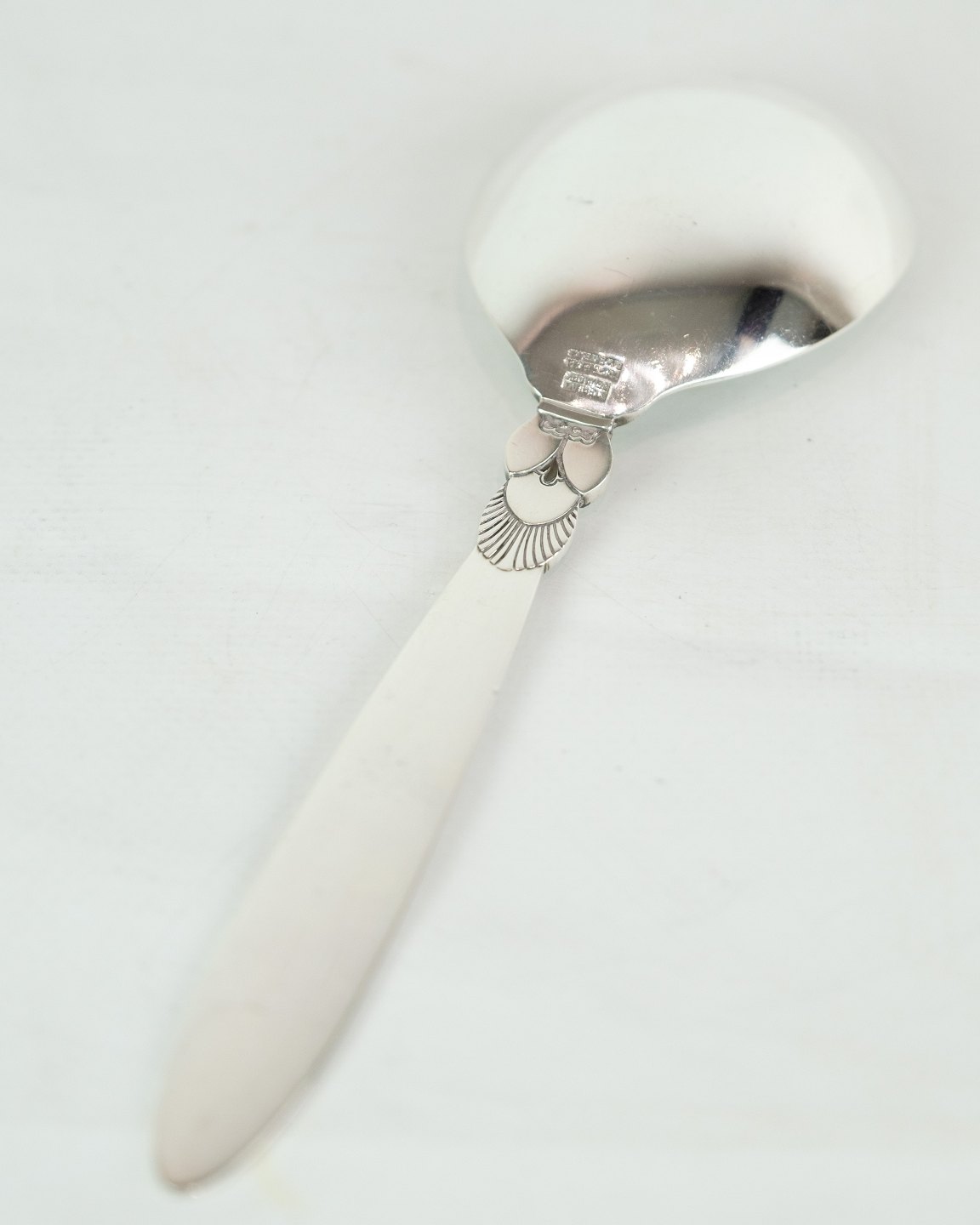 This Georg Jensen Kaktus vintage silver serving spoon is a beautiful and practical addition to your dining table. Designed by Gundorph Albertus in 1930 and crafted in sterling silver, this spoon exudes tradition, quality and elegance. Although in a nice used condition with normal signs of use, it will still bring a touch of charm to your next dinner. Own this unique and beautiful silver cutlery today.